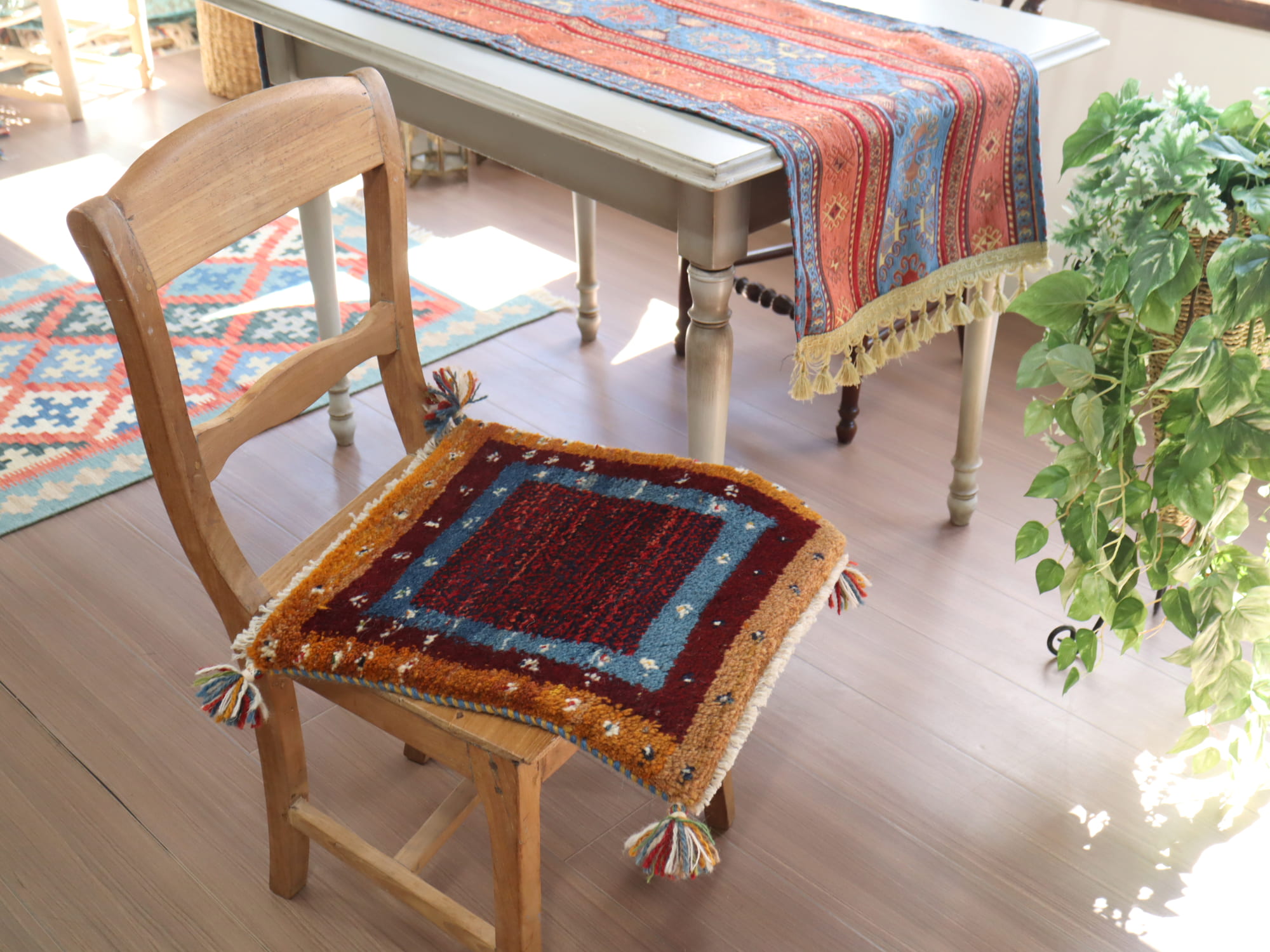 Key:GABBEH, ギャッベ, ギャベ, トライバルラグ, カシュカイ族, 遊牧民, 天然素材, イラン, 座布団, 手織り, 手紡ぎ, 草木染, ポンポン, ハンドメイド, 一点もの, ガラタバザール, 東京中野区