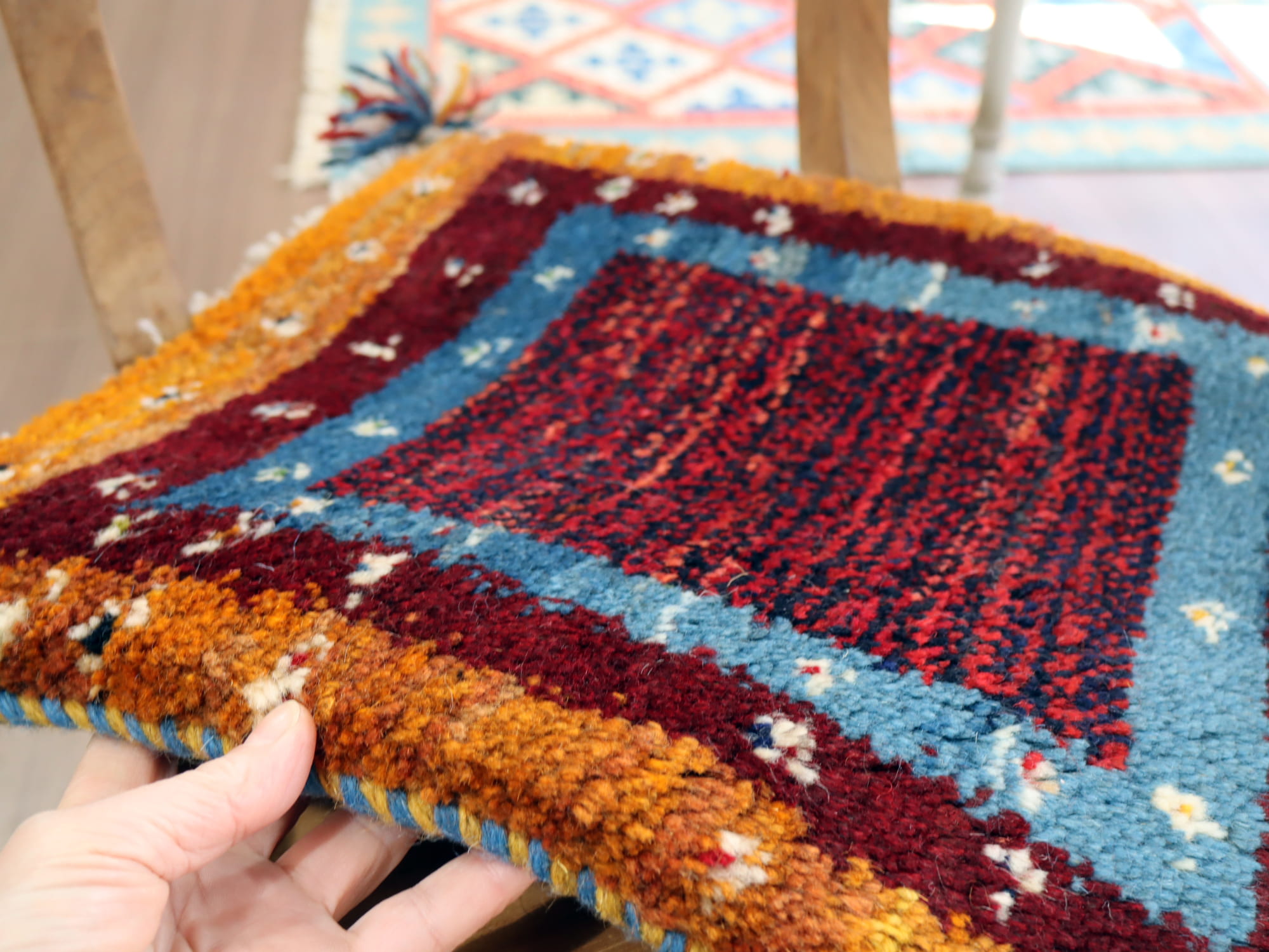 ギャッベ イラン産 ミニ 座布団サイズ 43x41cm 三重のボーダー