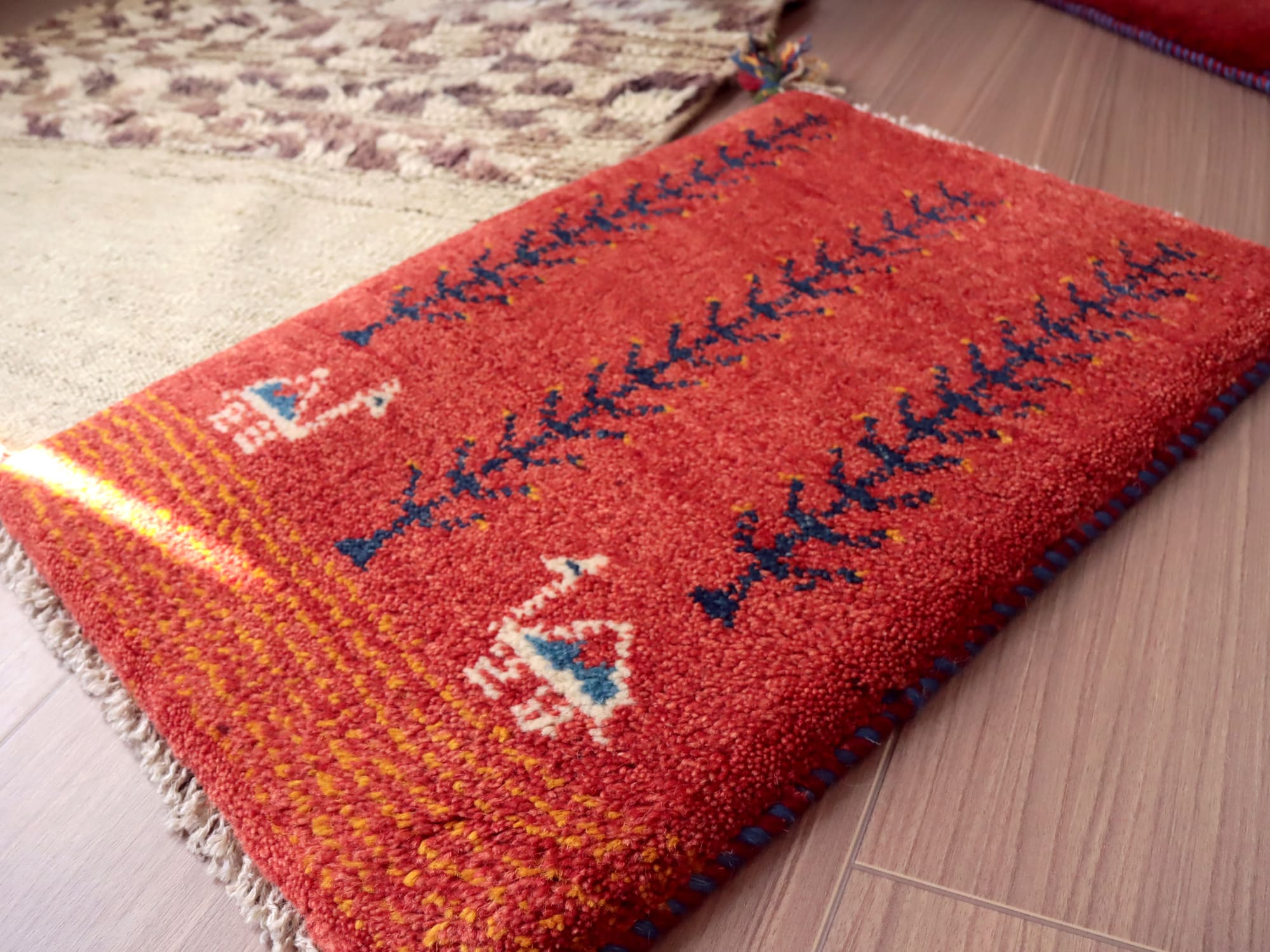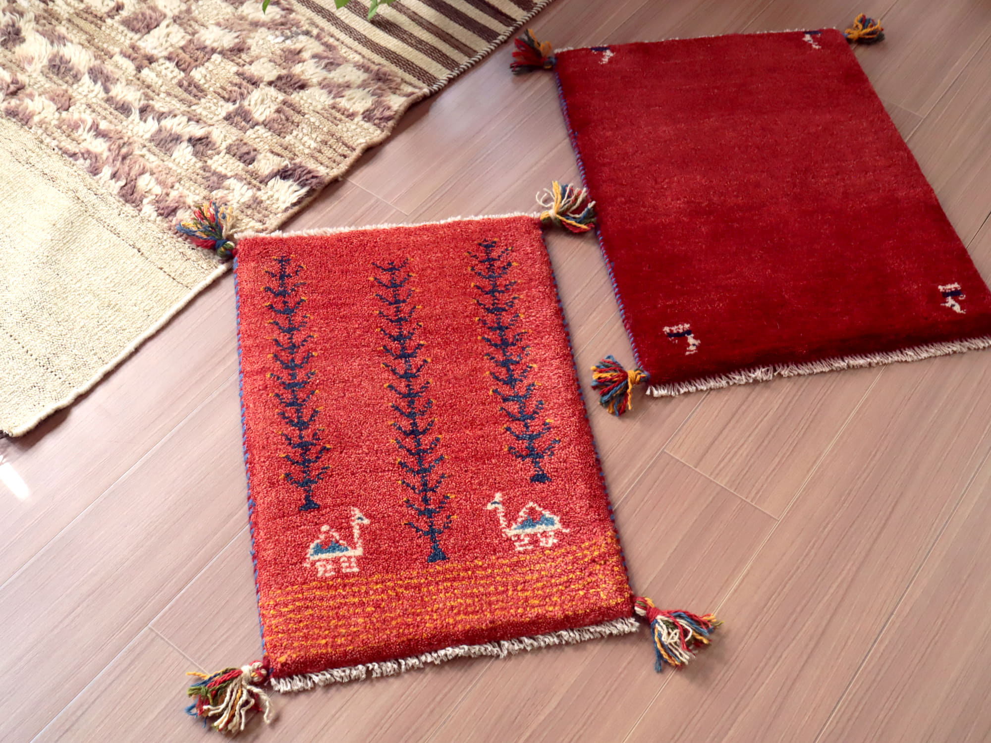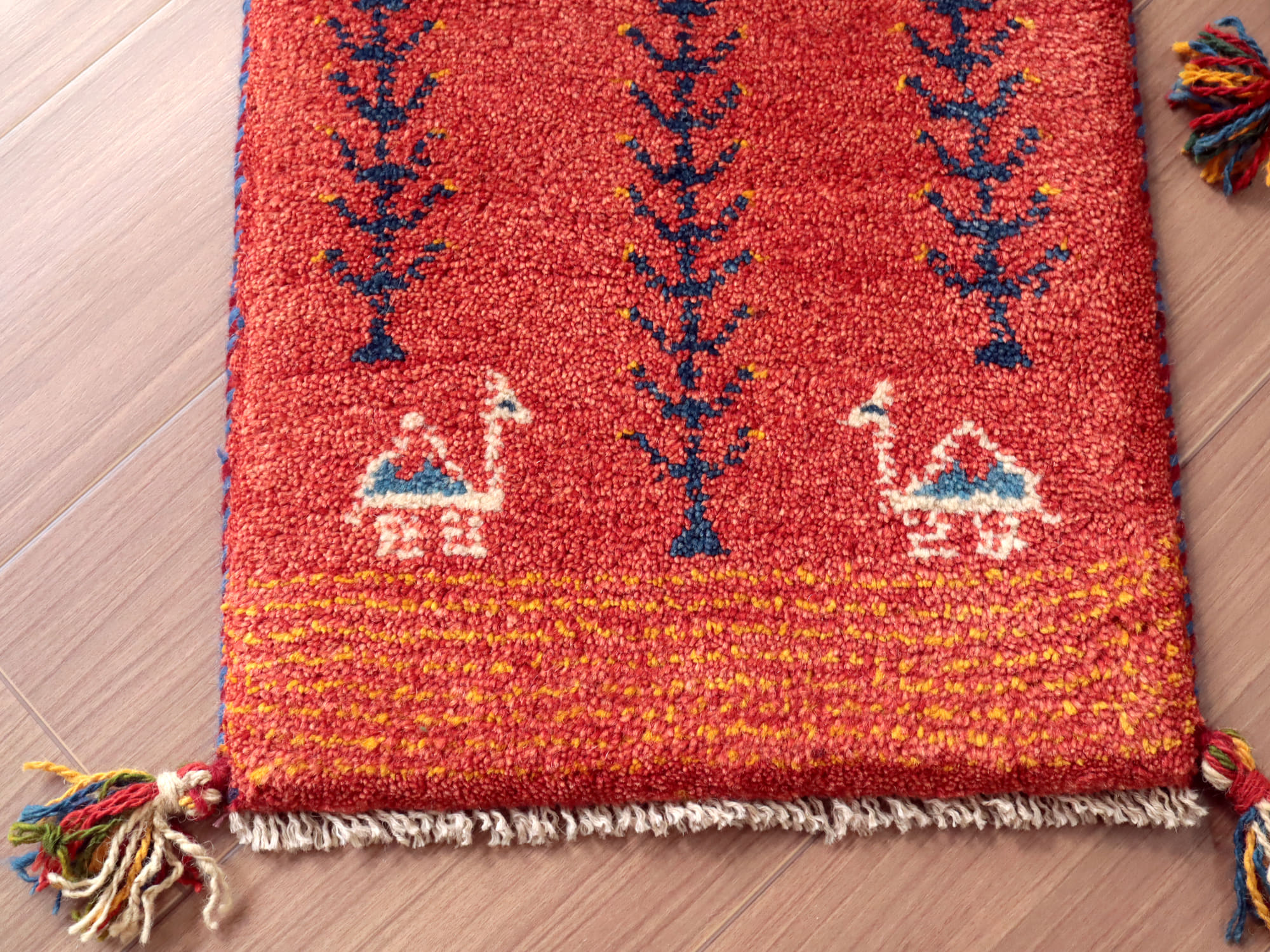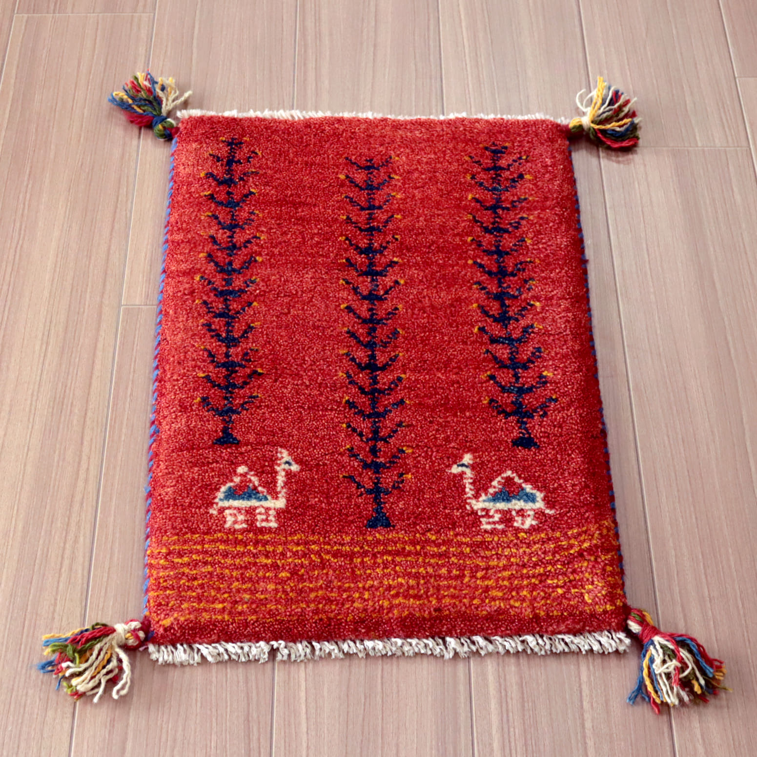 - ミニギャッベ イラン 遊牧民のふかふかラグ 56x38cm レッド 生命の木とラクダ