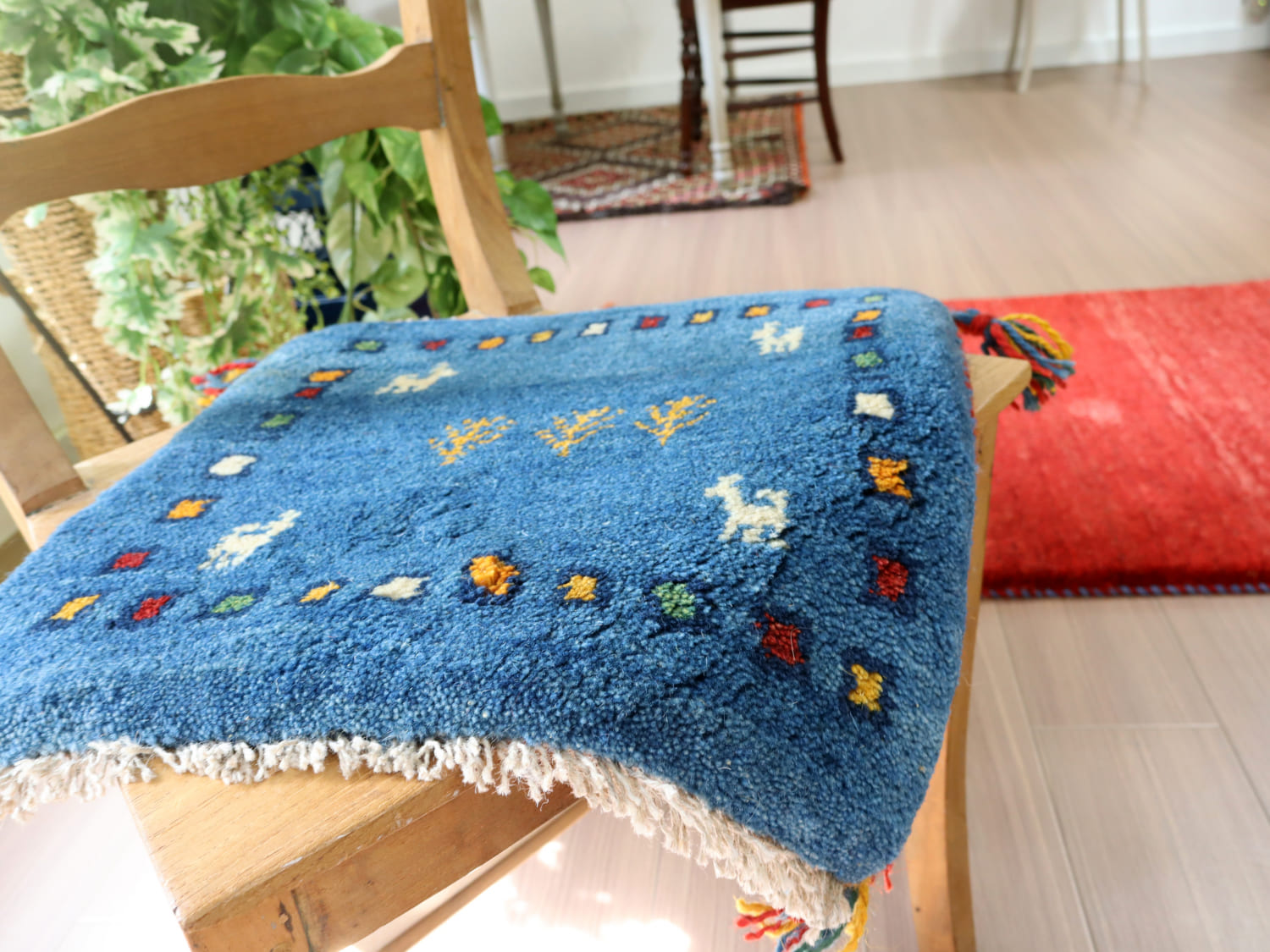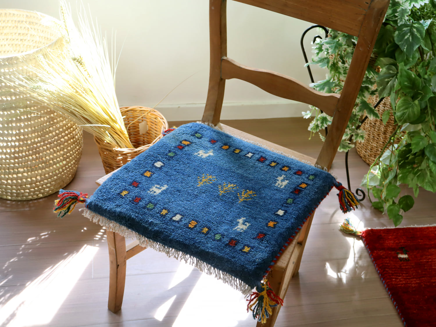 - ギャッベ 座布団サイズ 39x40cm ブルー イラン産手織りギャッベ