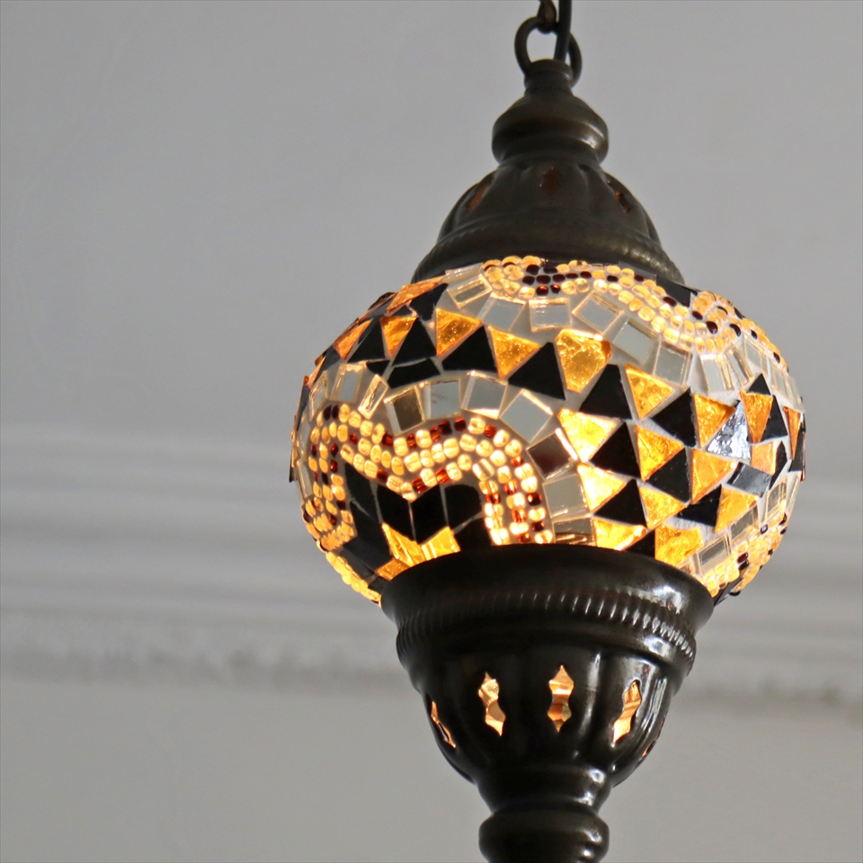 - トルコランプ モザイクランプ 直径13cm 全高67cm アンバーイエロー ペンダントライト