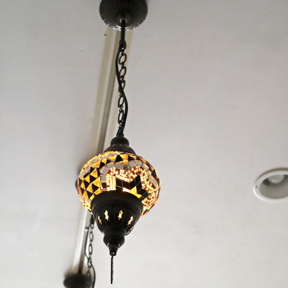 トルコランプ モザイクランプ 直径13cm 全高67cm アンバーイエロー ペンダントライト