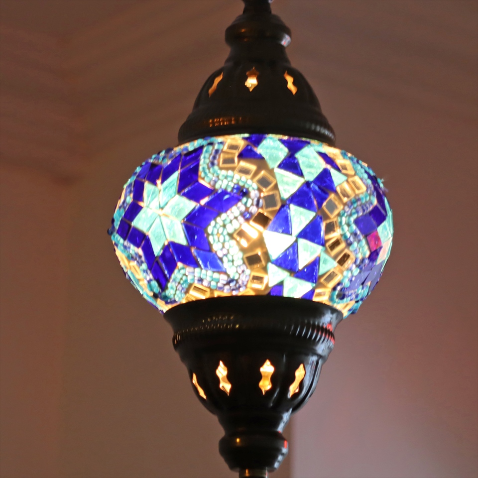- トルコランプ モザイクランプ 直径13cm 全高67cm ブルー ペンダントライト