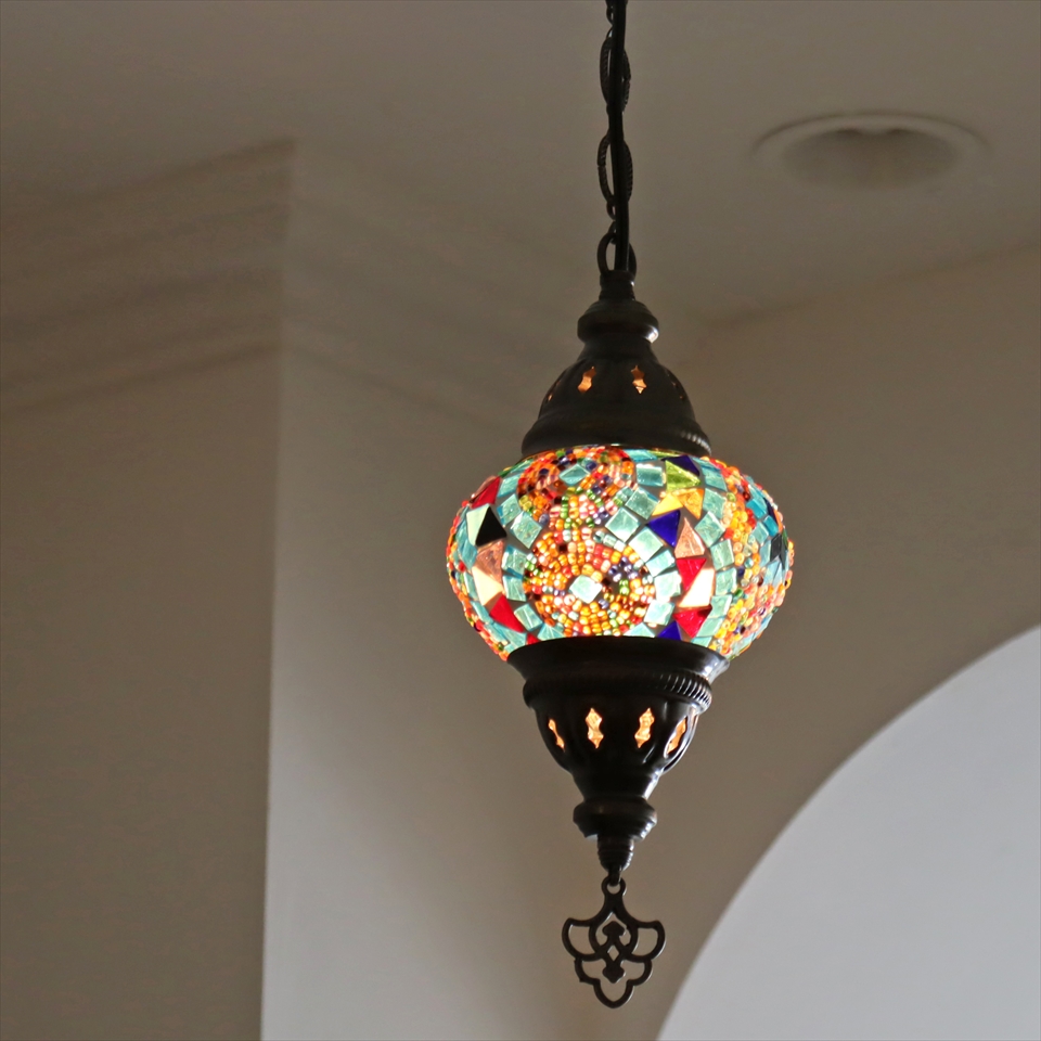 Key:トルコランプ モザイクランプ 天井照明 ガラスシェード ペンダントライト シーリングライト ランプ ライト 照明 間接照明 インテリア エスニック オリエンタル ガラスランプ 引掛けシーリング対応