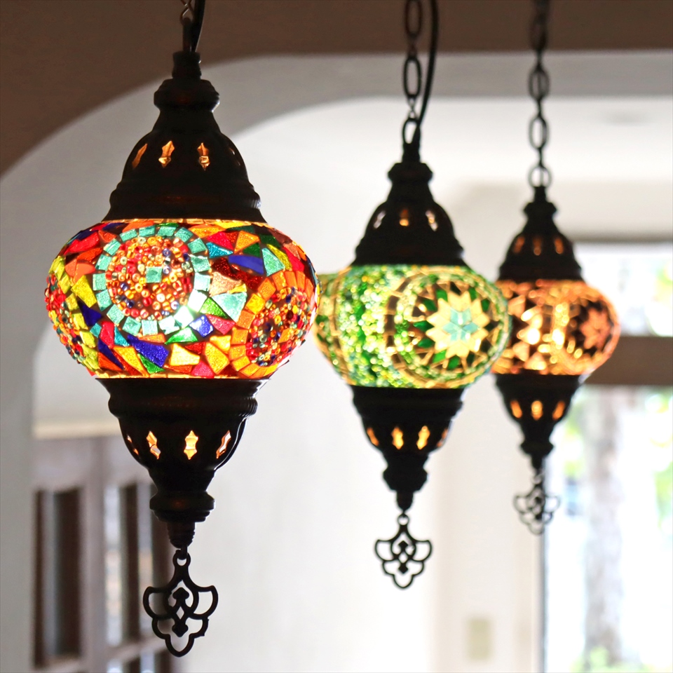 - トルコランプ モザイクランプ 直径13cm 全高67cm ミックスカラー ペンダントライト
