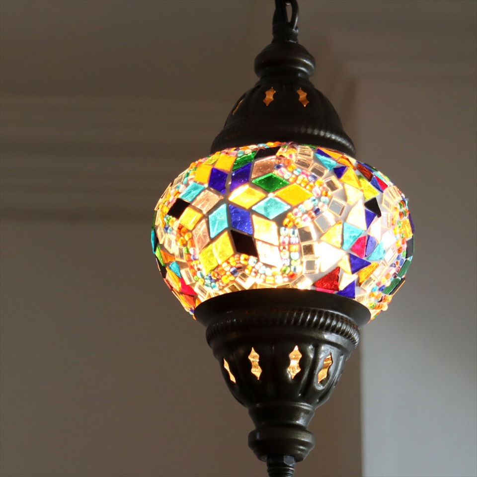 トルコランプ モザイクランプ 直径13cm 全高67cm ミックスカラー ペンダントライト