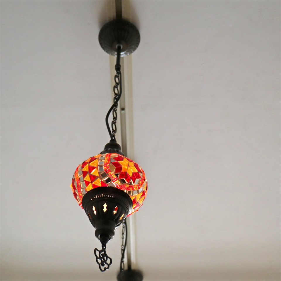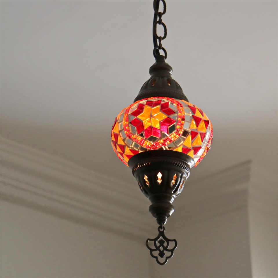 - トルコランプ モザイクランプ 直径13cm 全高67cm オレンジ ペンダントライト
