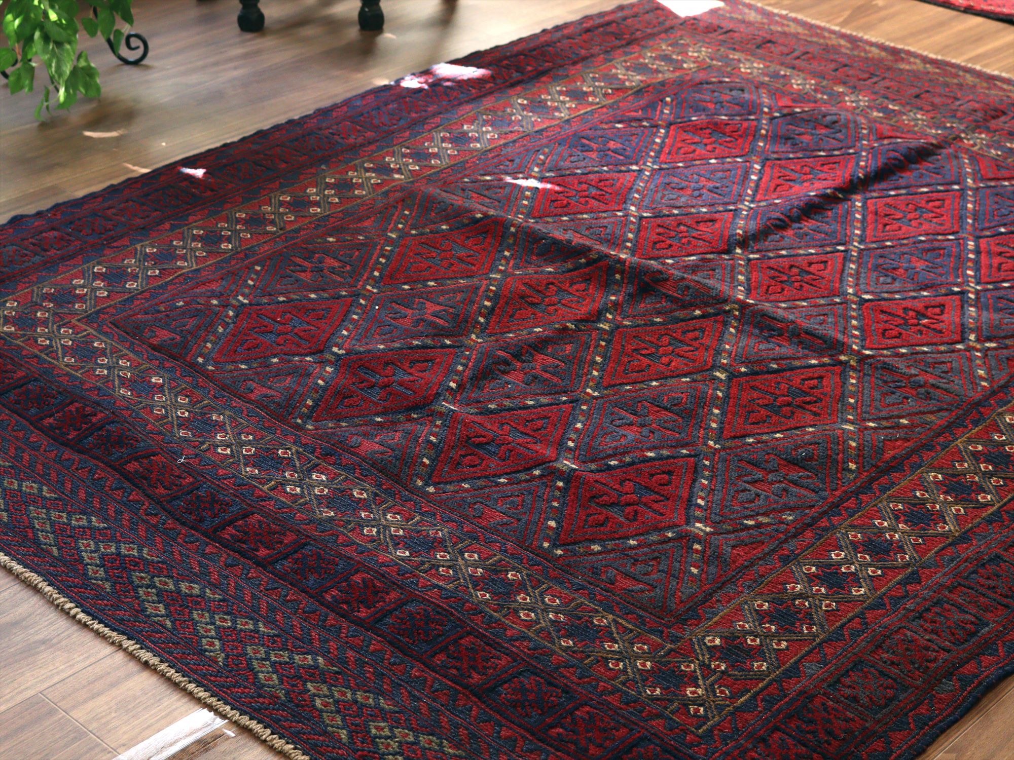 - オールドキリム アフガニスタン ミシュワニ183×146cm 連続する幾何学模様