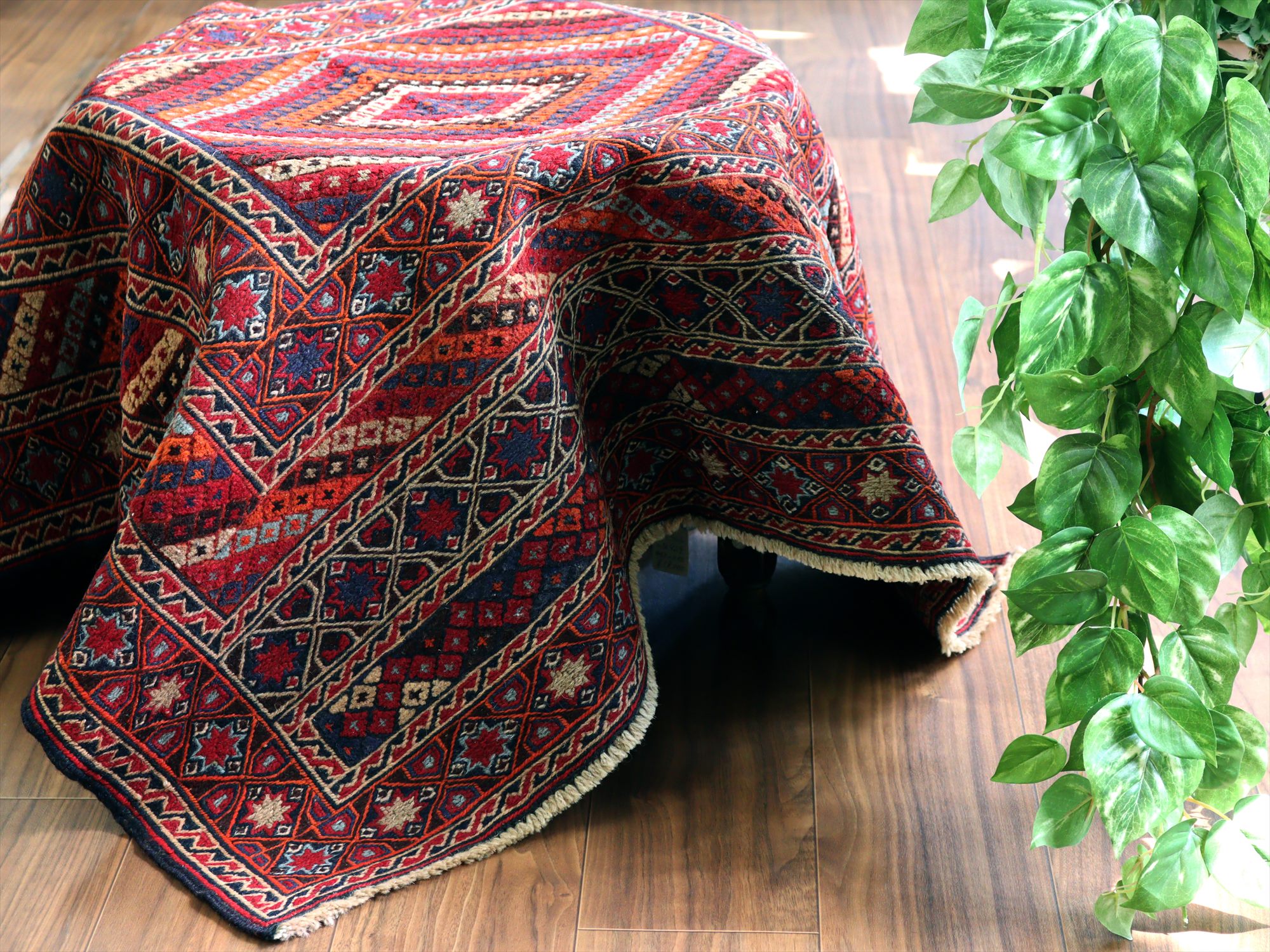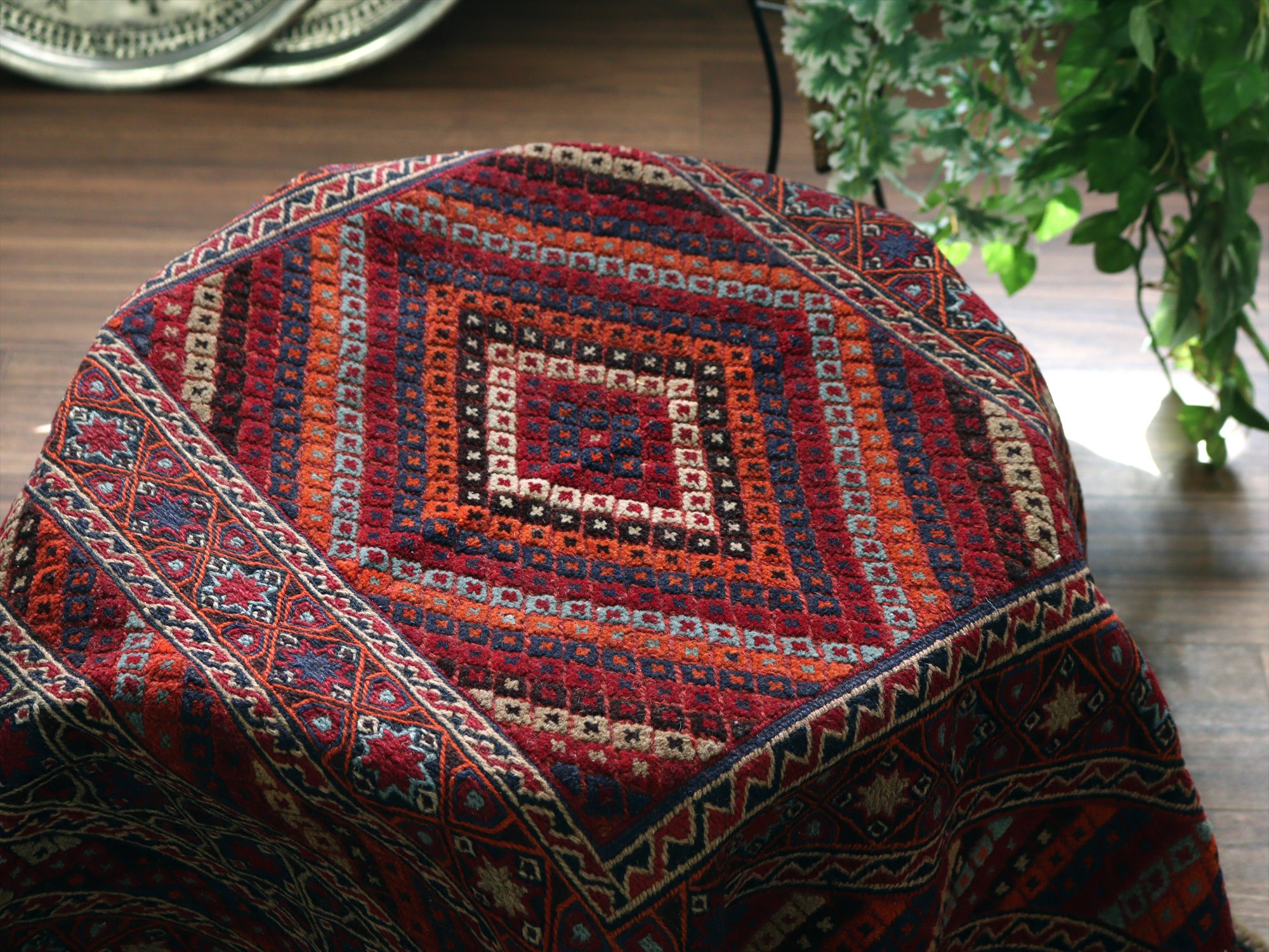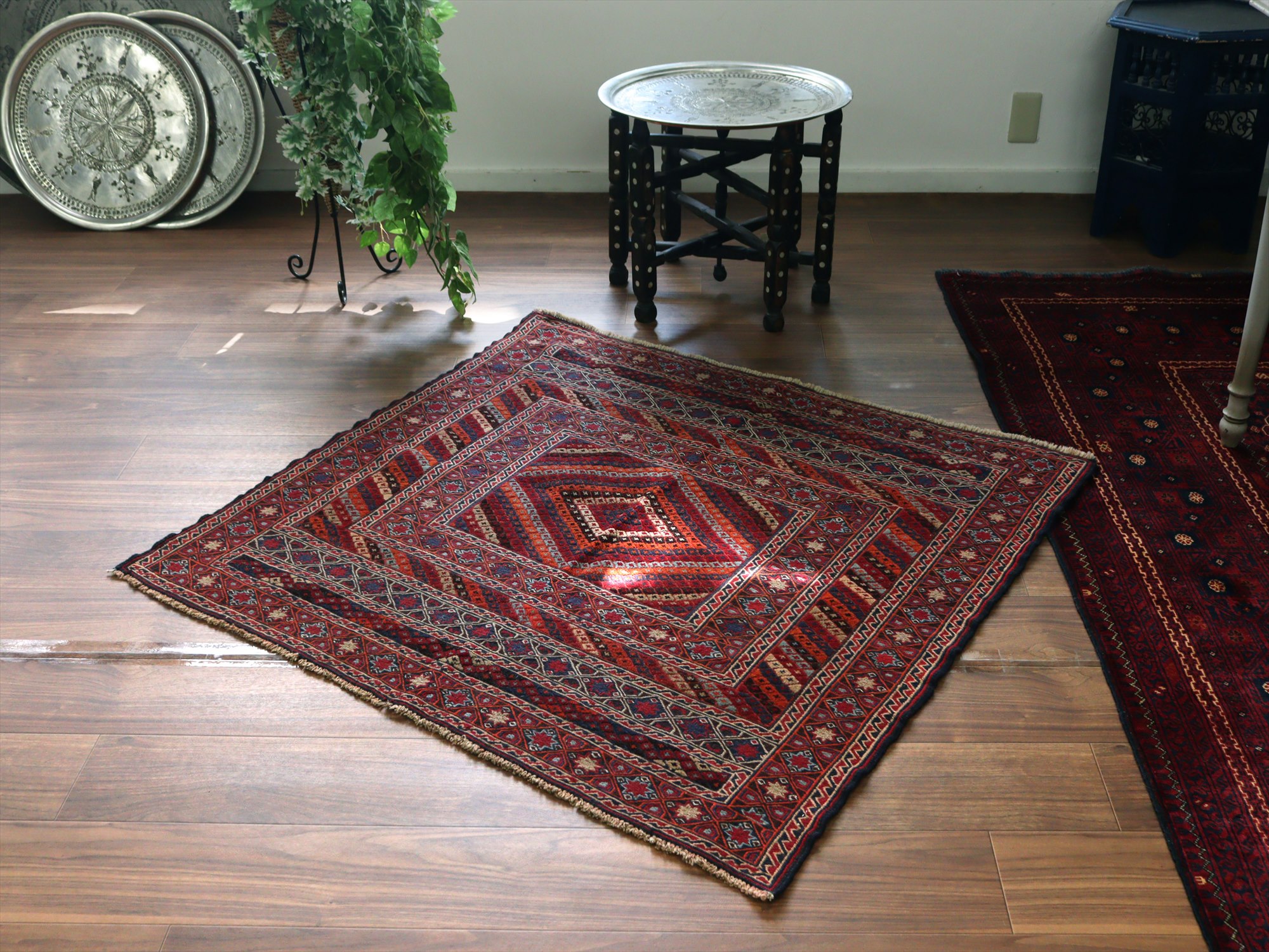 - オールドキリム アフガニスタン ミシュワニ105×113cm 幾何学模様とメダリオン