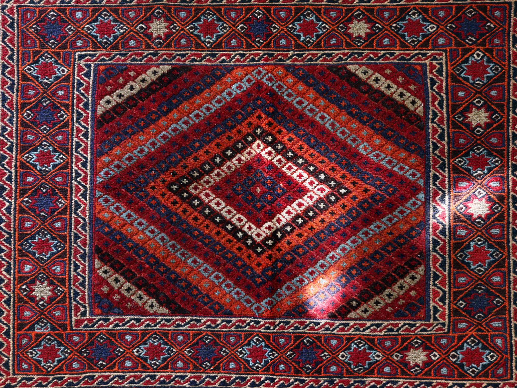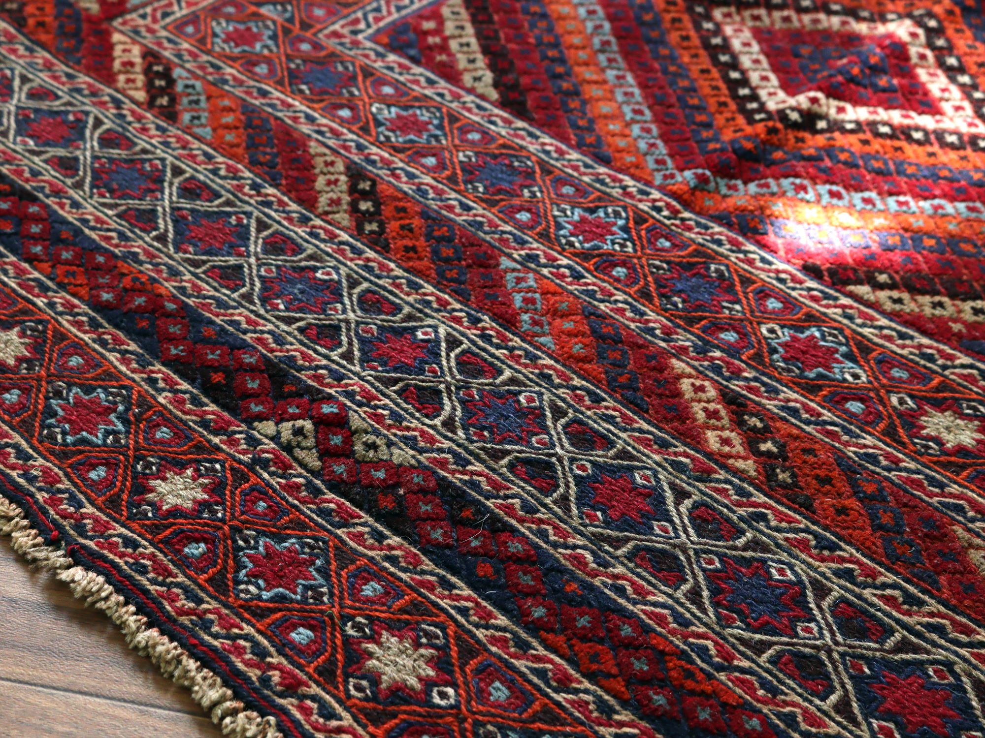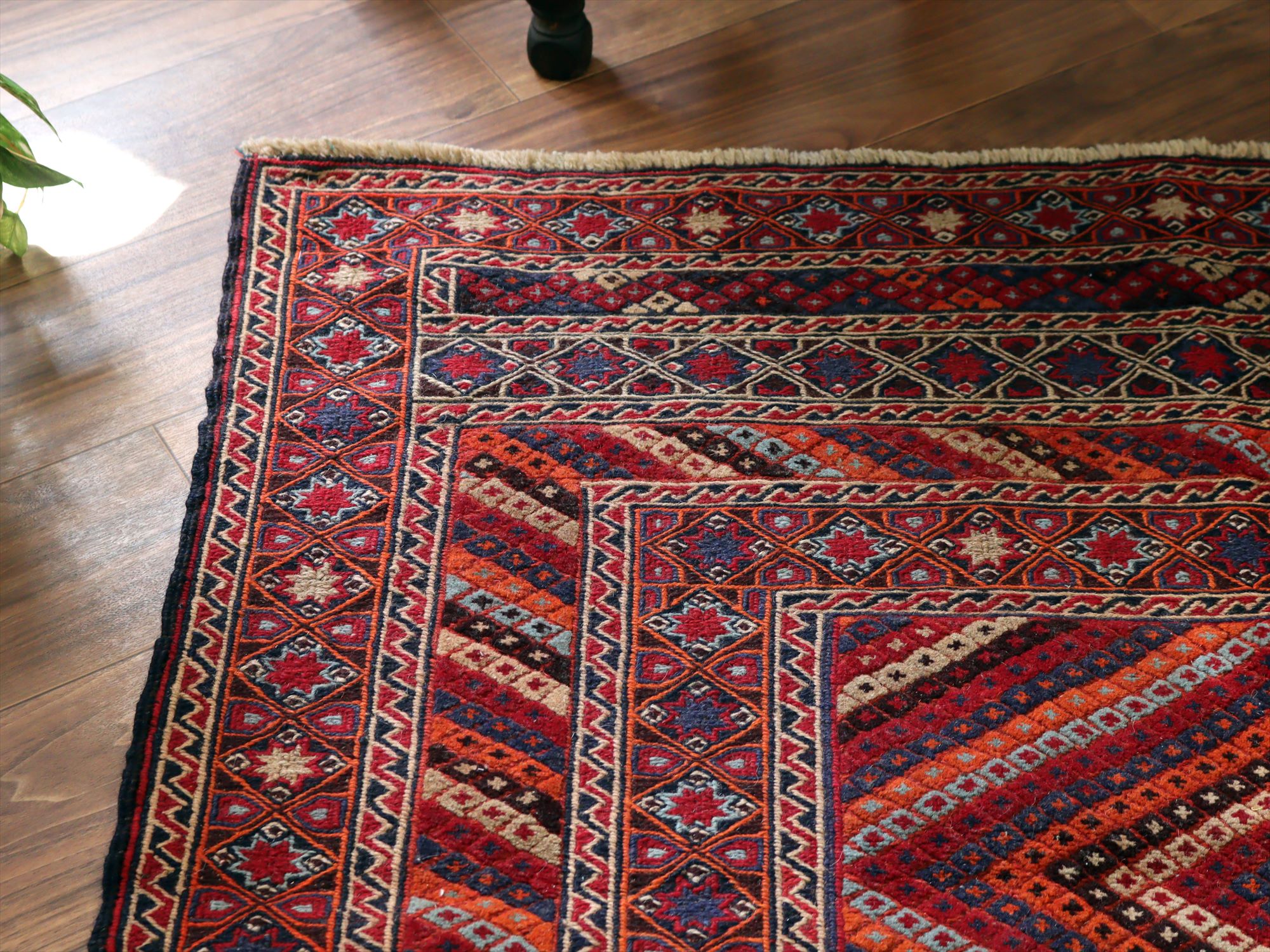 - オールドキリム アフガニスタン ミシュワニ105×113cm 幾何学模様とメダリオン