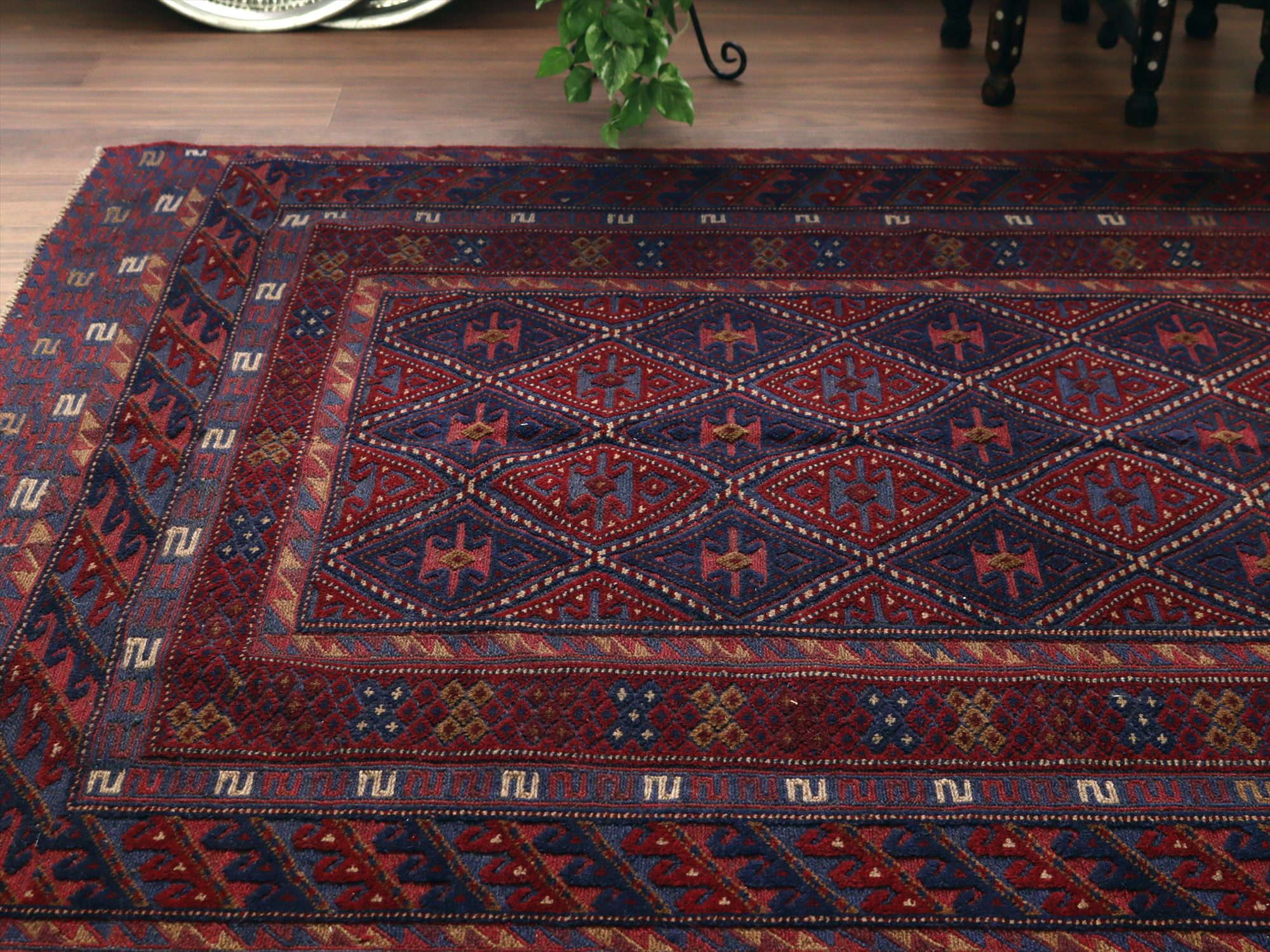 - オールドキリム アフガニスタン ミシュワニ193×143cm 連続する幾何学模様