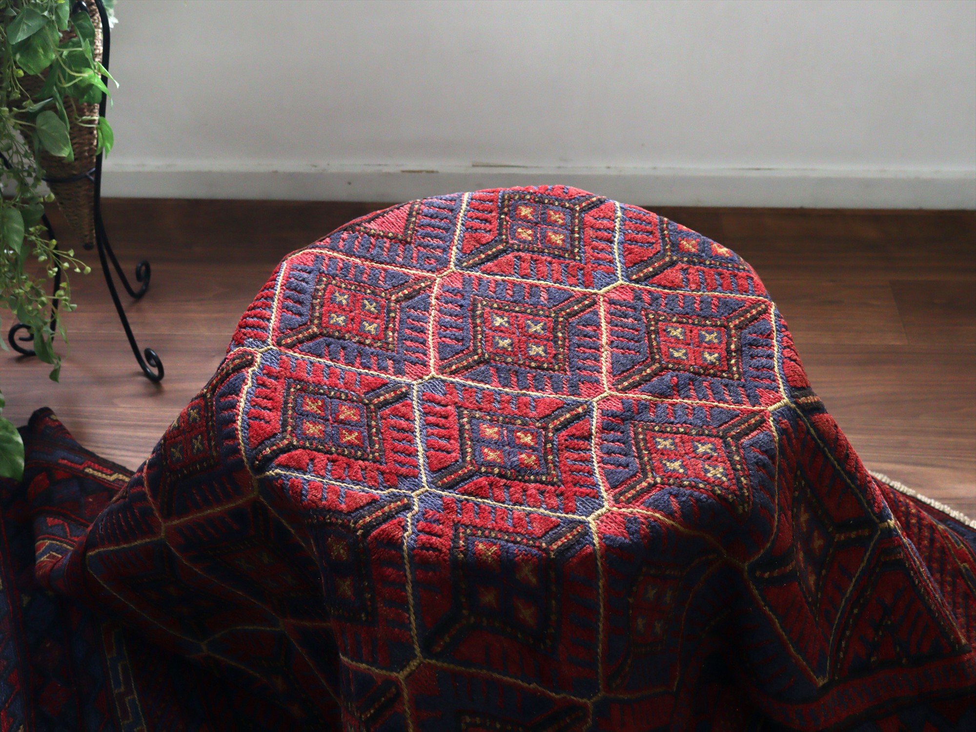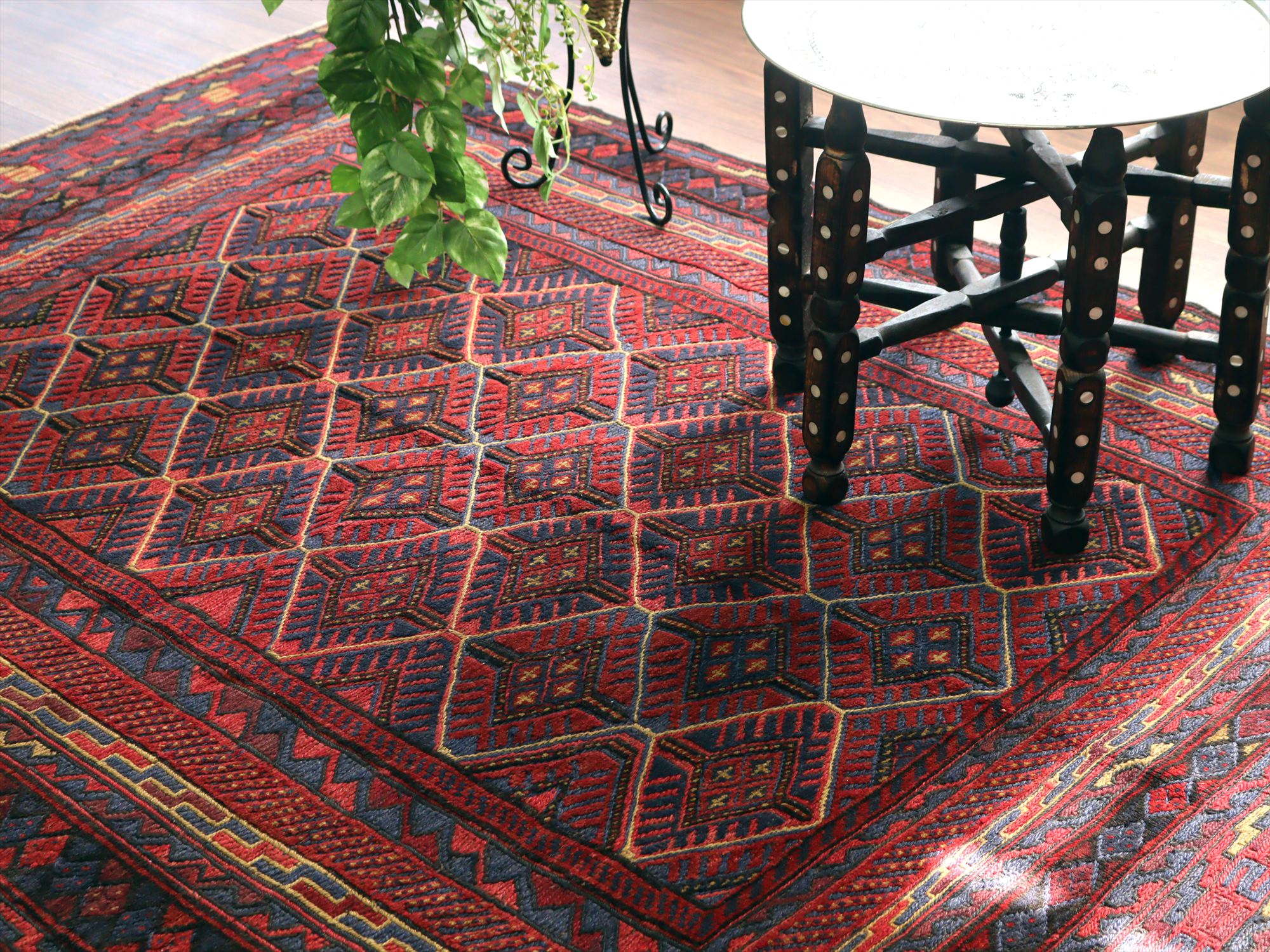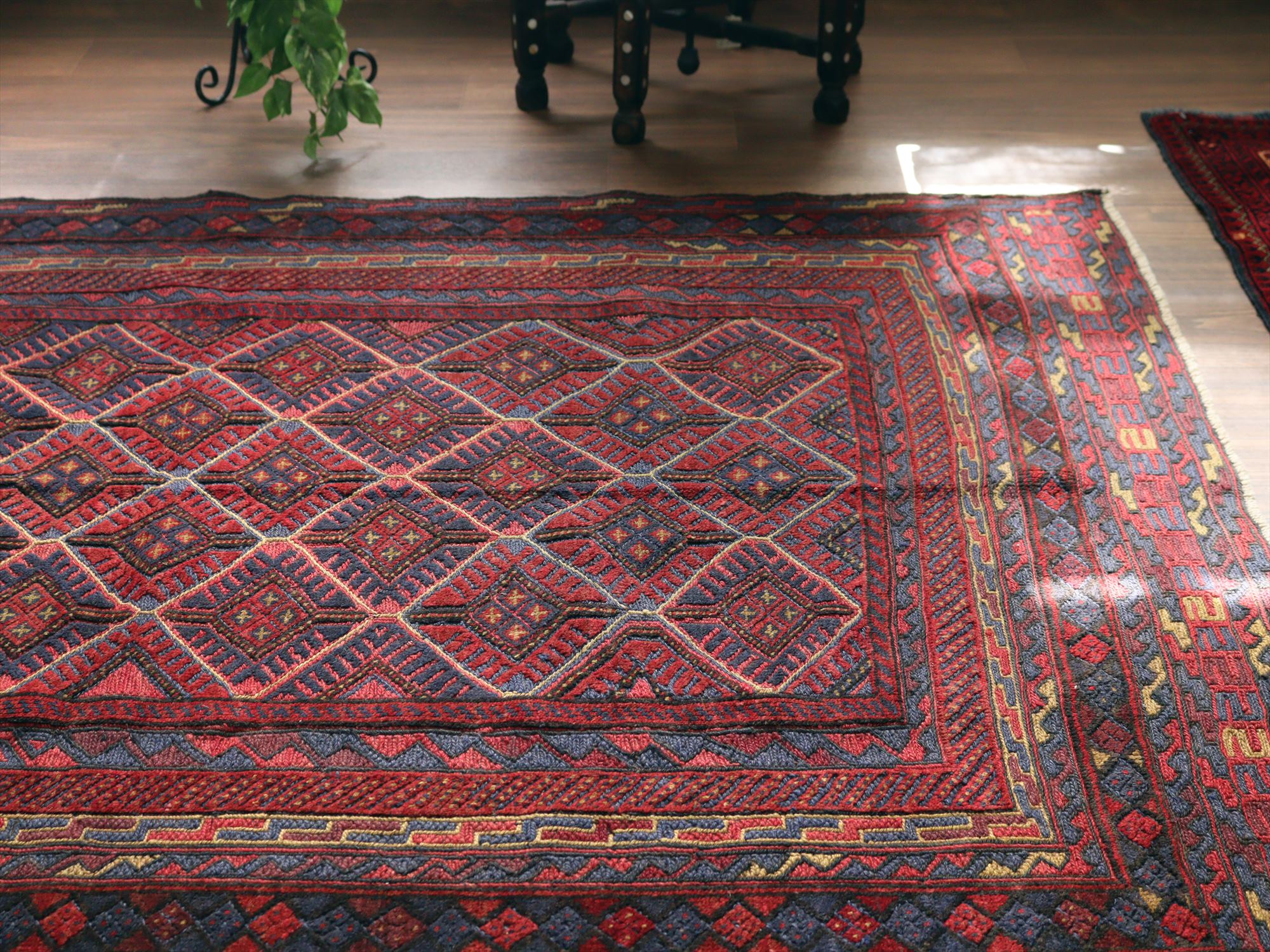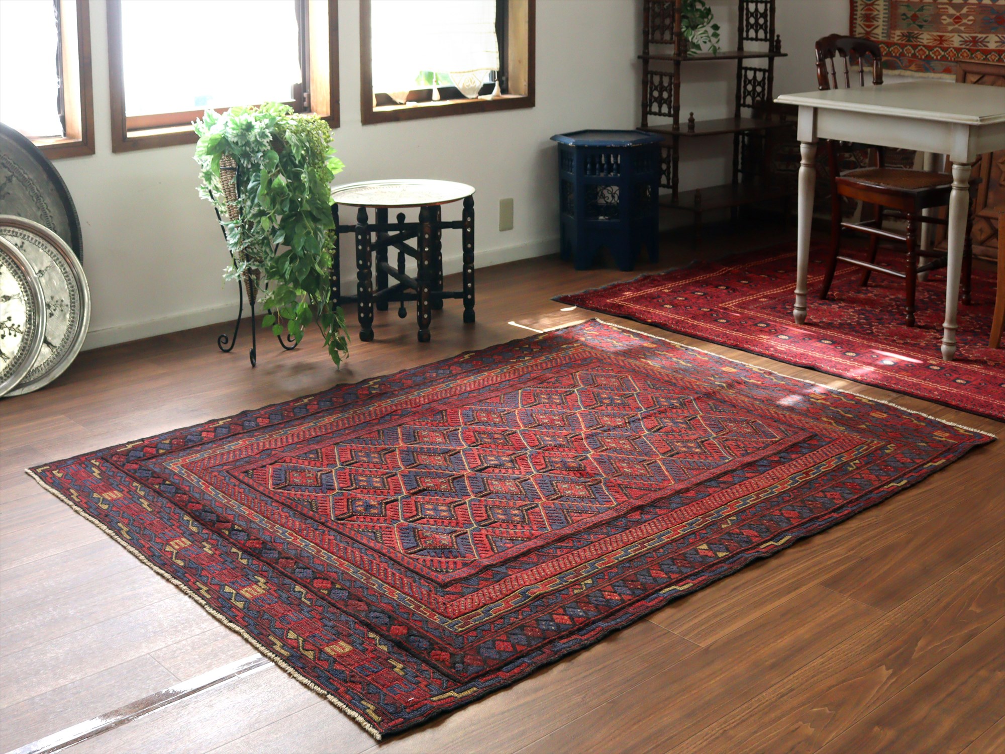 - オールドキリム アフガニスタン ミシュワニ189×138cm 幾何学模様とダイヤ