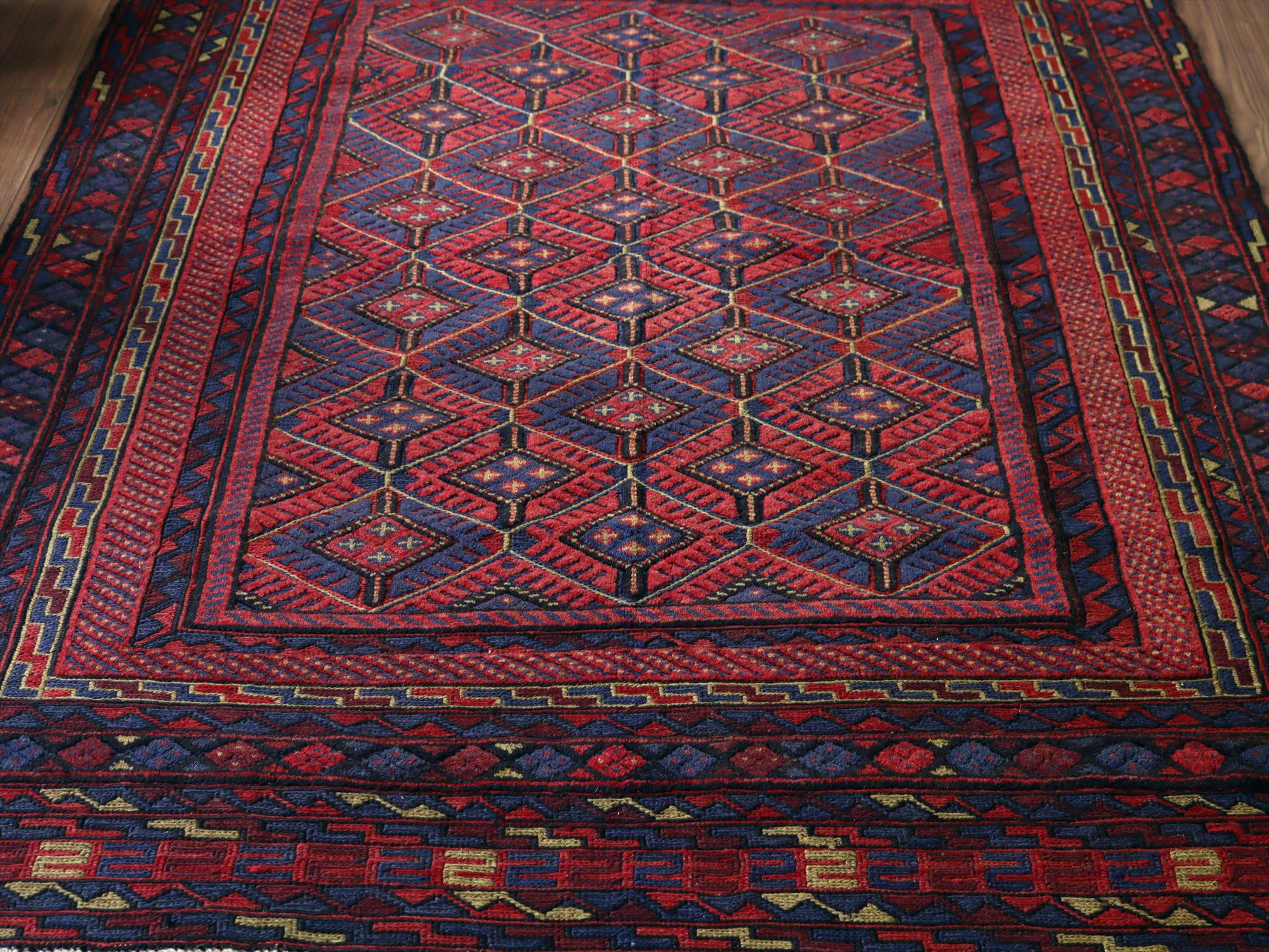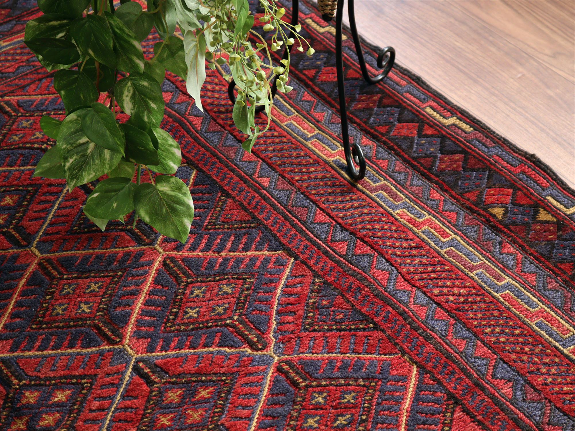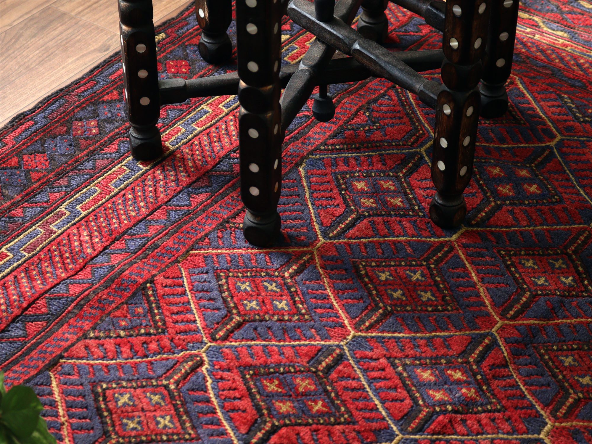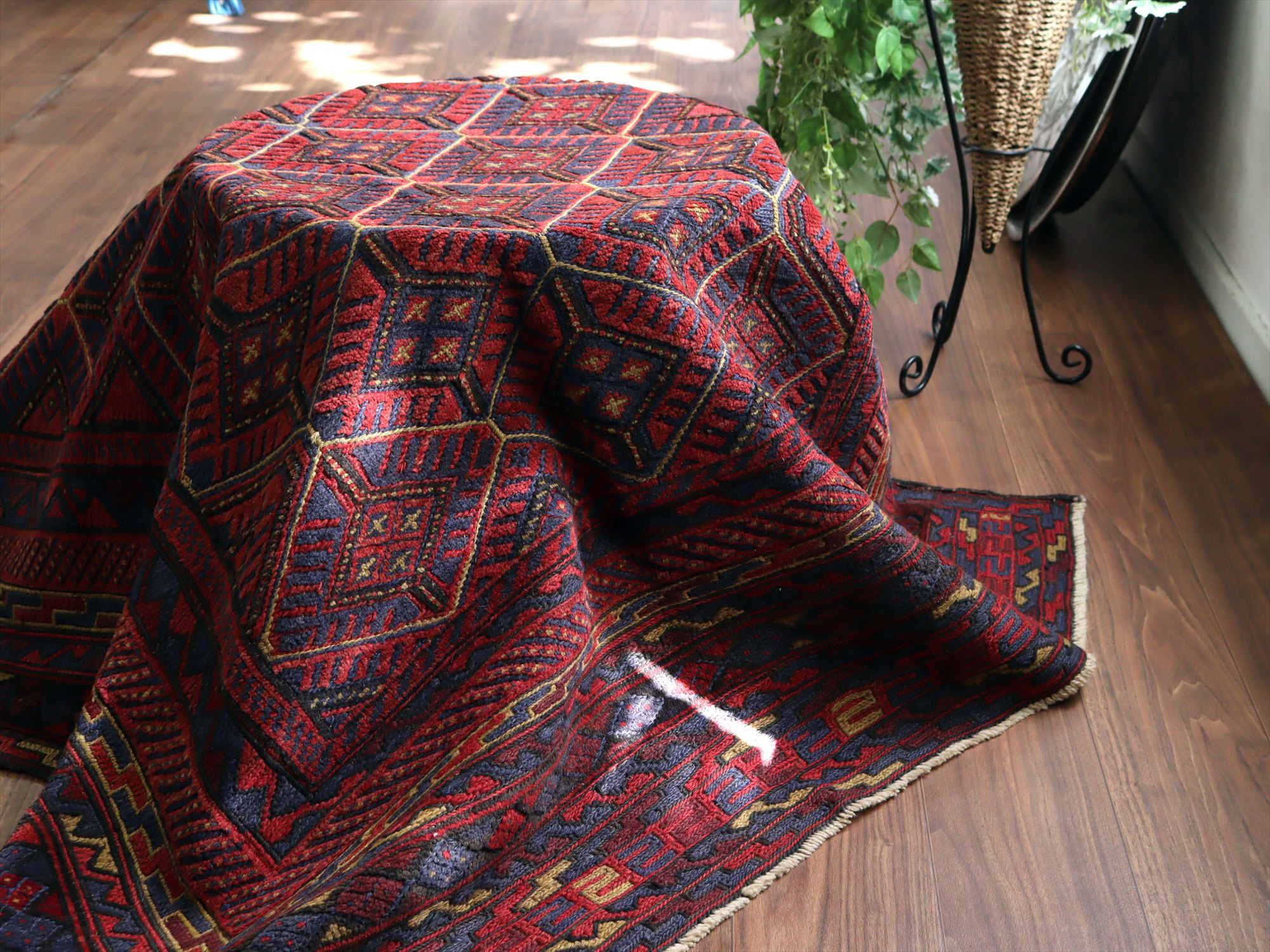 - オールドキリム アフガニスタン ミシュワニ189×138cm 幾何学模様とダイヤ