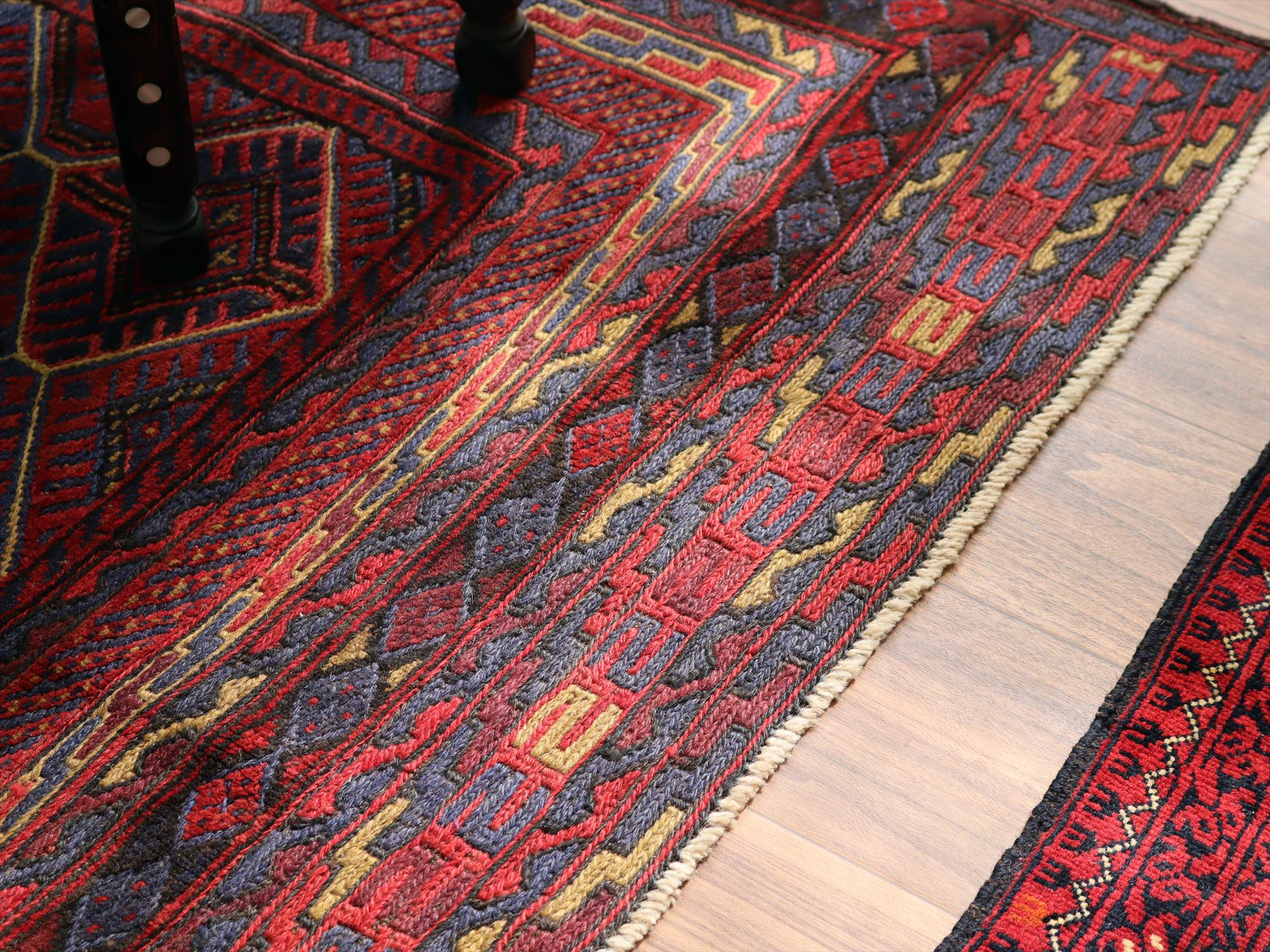 アフガニスタン東部、イランと国境を接するエリアの緻密な織りのキリムです。細かい織り目のスマック織りをベースに、立体感のあるカーペット織りでモチーフをレリーフのように織り込んだ1枚。