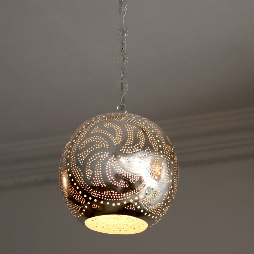 6. モロッコランプ メタルシェードランプ ラウンド形 φ22cm エジプト製 ハンドメイド