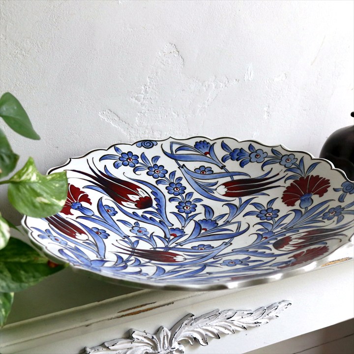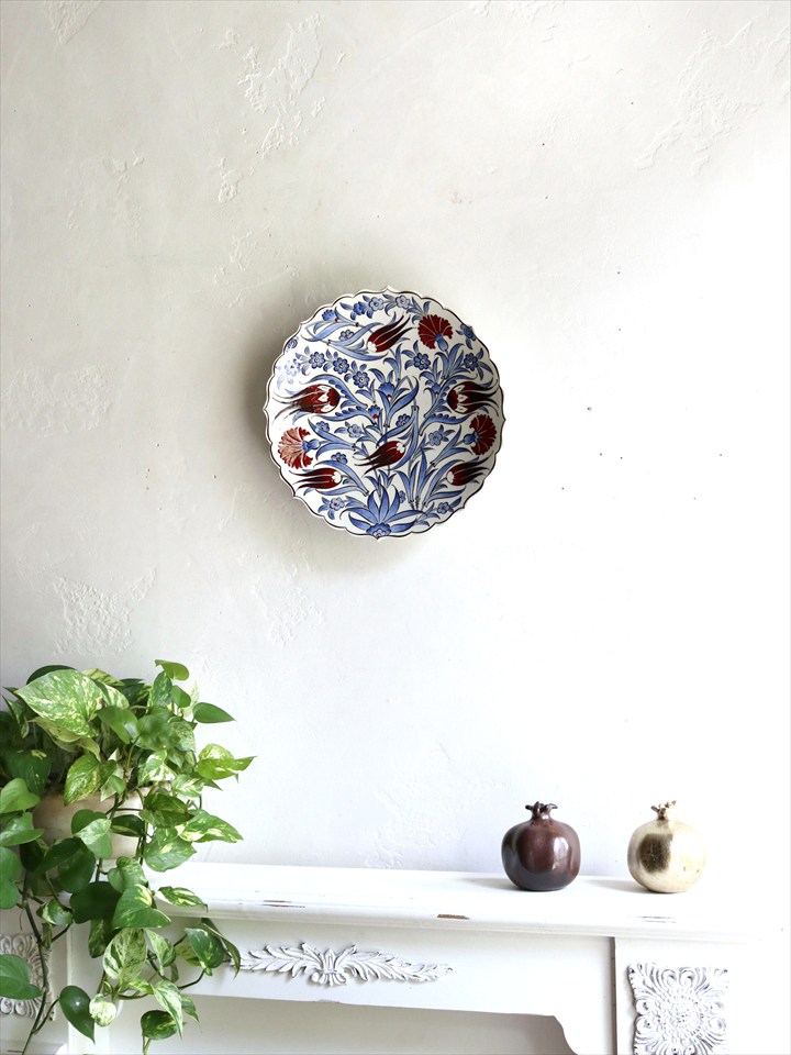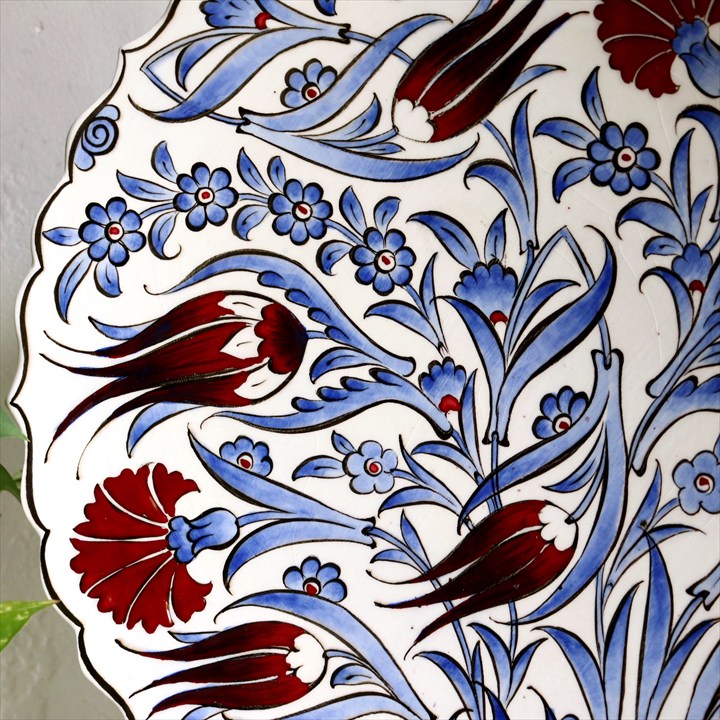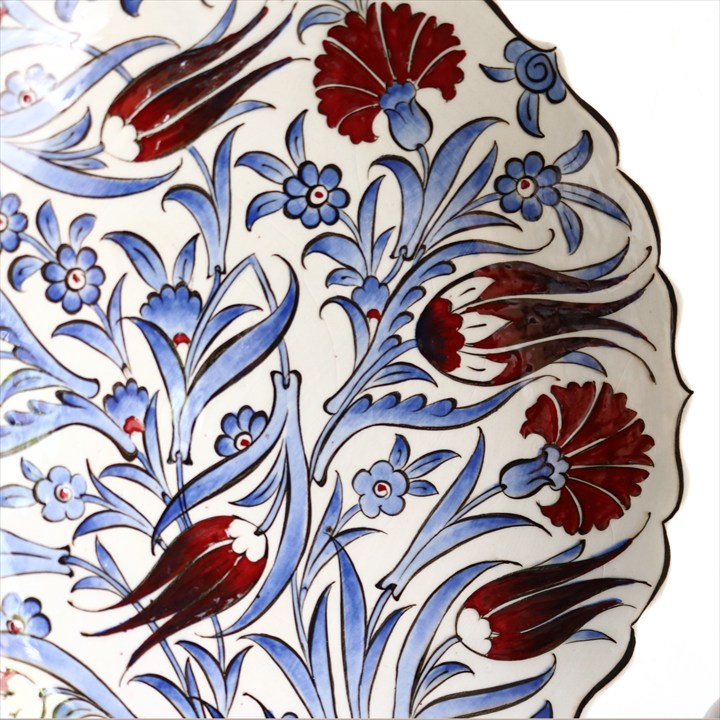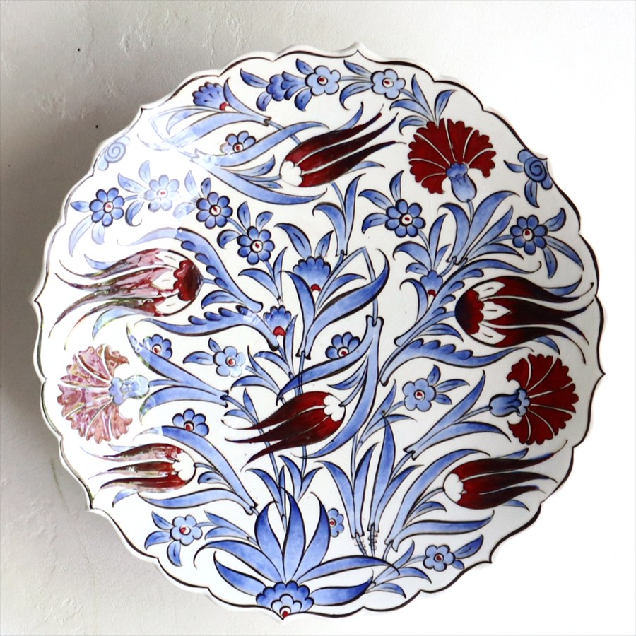 - トルコ・キュタフヤ陶器 飾り絵皿 直径30.5cm チューリップ&カーネーション オットマンクラシック・ミュージアムピース Turkish Hand Paint Plate