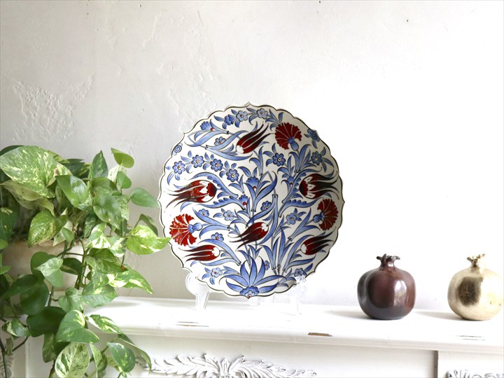 トルコ・キュタフヤ陶器 飾り絵皿 直径30.5cm チューリップ&カーネーション オットマンクラシック・ミュージアムピース Turkish Hand Paint Plate