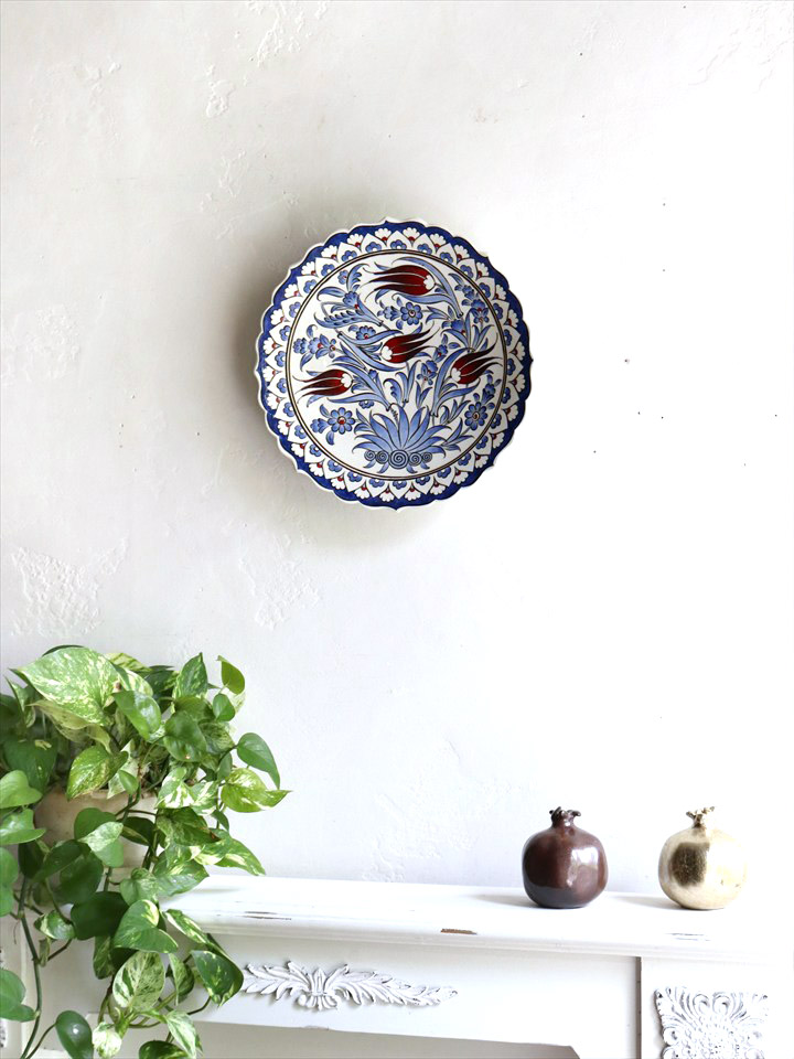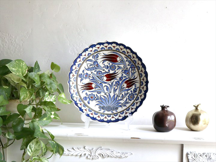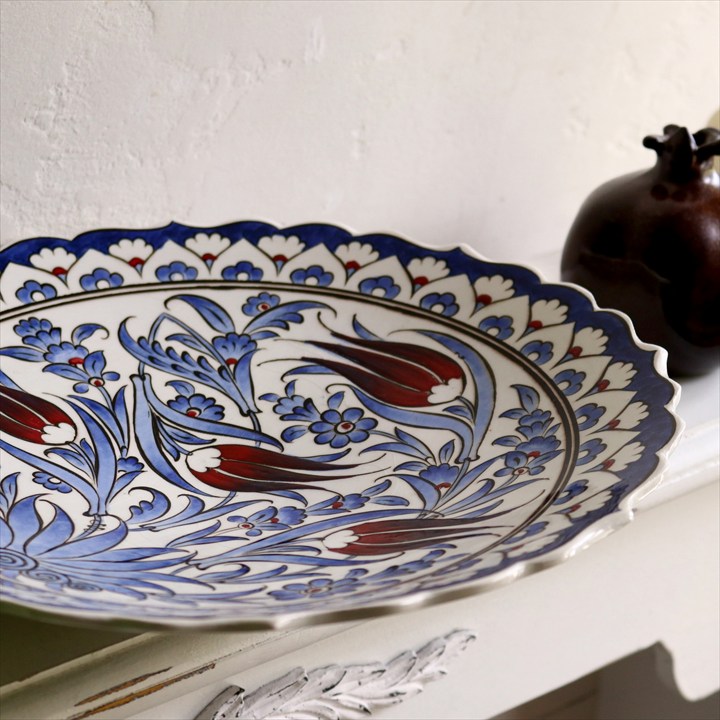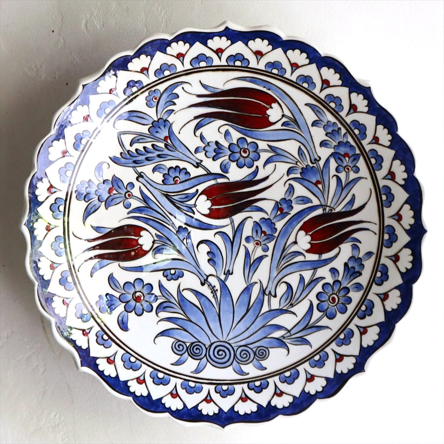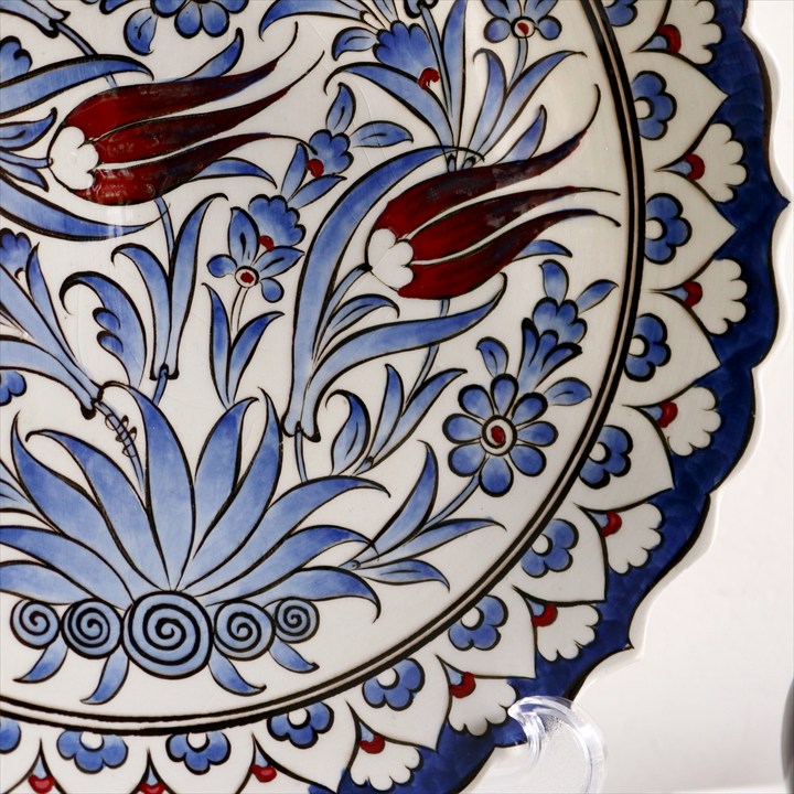 - トルコ・キュタフヤ陶器 飾り絵皿 直径31cm チューリップ オットマンクラシック・ミュージアムピース Turkish Hand Paint Plate
