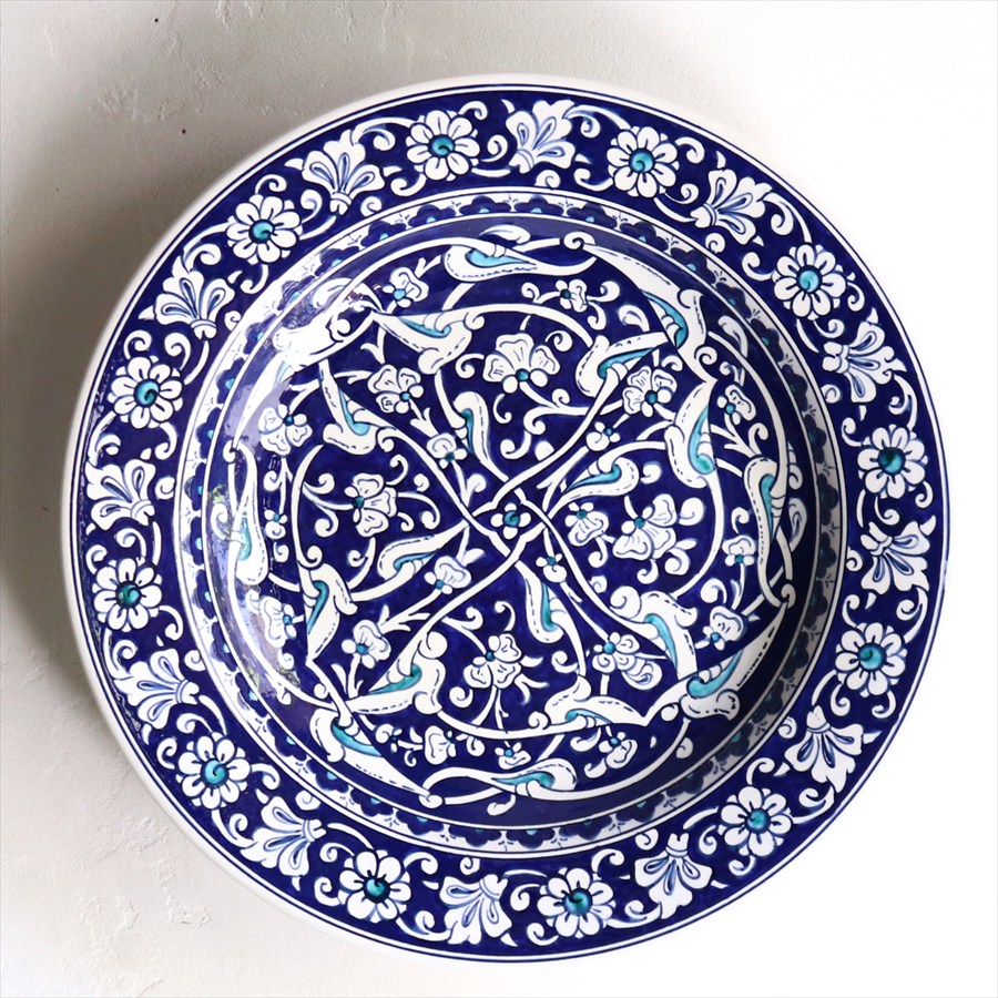 - トルコ・キュタフヤ陶器 飾り絵皿 直径32.5cm 細かなアラベスク文様 オットマンクラシック・ミュージアムピース Turkish Hand Paint Plate