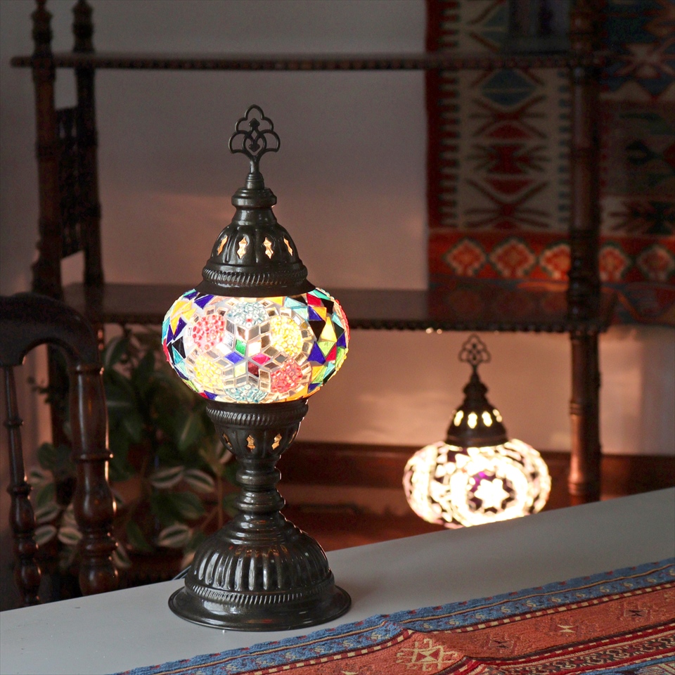 - トルコランプ モザイクテーブルランプ 直径13cm 全高36cm ミックスカラー