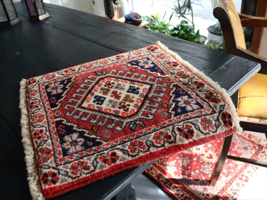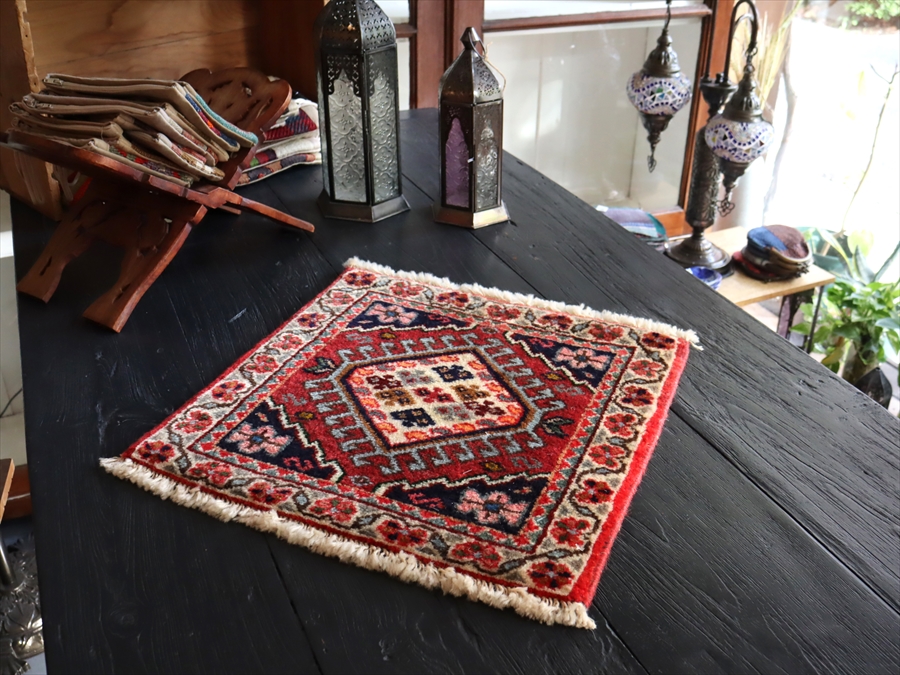 【15%OFF】ヤラメ 手織りラグ ミニサイズ /トライバルラグ42×40cm