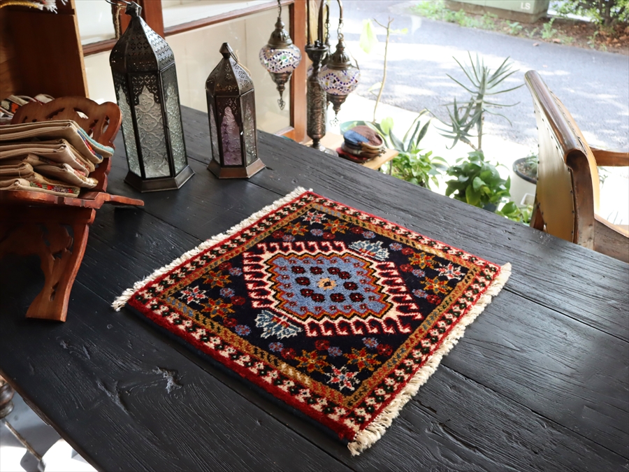 - ヤラメ 手織りラグ ミニサイズ /トライバルラグ38×41cm