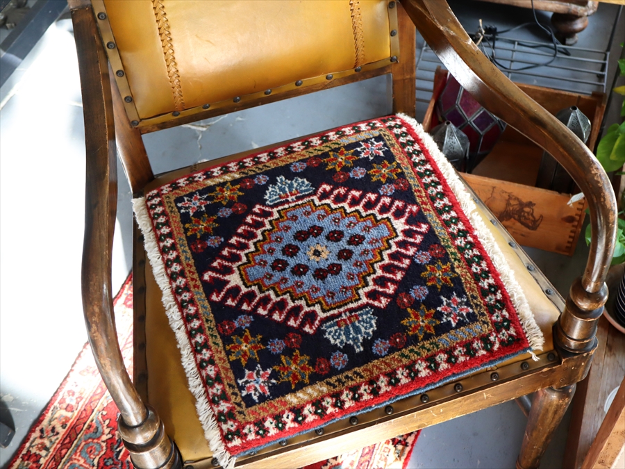 30cm角のミニサイズのラグ。小さいながらも、織りはしっかりしていて本格的です。多少ゆがみが気になりますが、ゆがみも含めて素朴な感じをお楽しみいただければと思います。