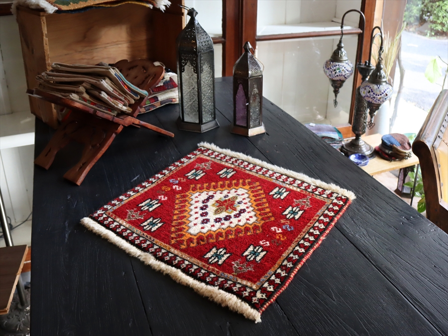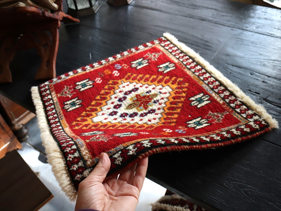- ヤラメ 手織りラグ ミニサイズ /トライバルラグ39×41cm