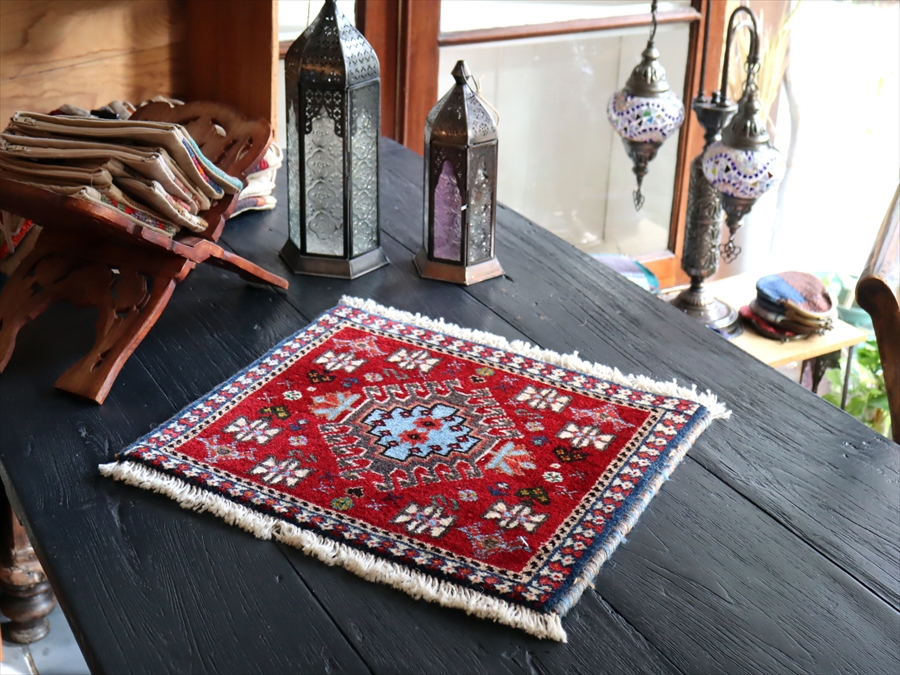 - ヤラメ 手織りラグ ミニサイズ /トライバルラグ38×42cm