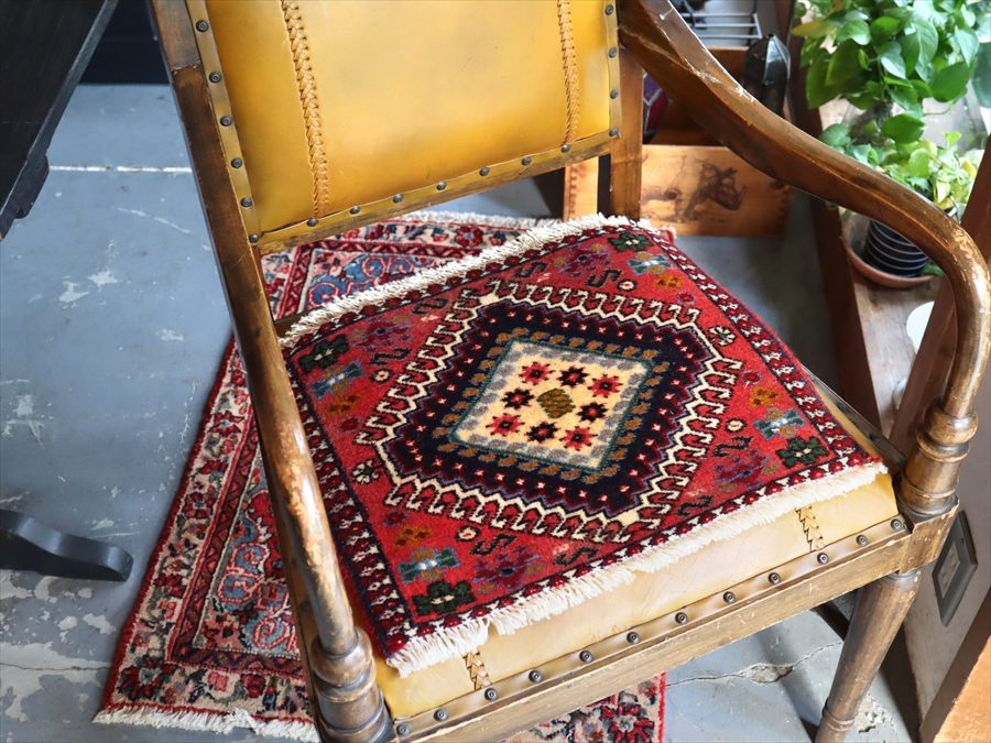 30cm角のミニサイズのラグ。小さいながらも、織りはしっかりしていて本格的です。多少ゆがみが気になりますが、ゆがみも含めて素朴な感じをお楽しみいただければと思います。