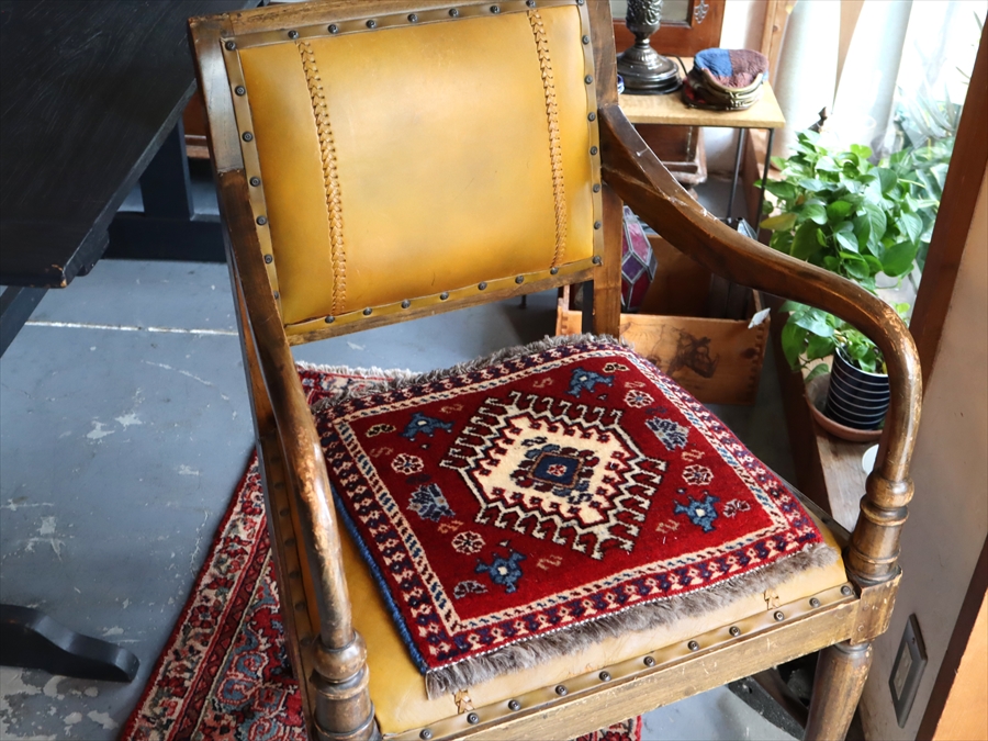 30cm角のミニサイズのラグ。小さいながらも、織りはしっかりしていて本格的です。多少ゆがみが気になりますが、ゆがみも含めて素朴な感じをお楽しみいただければと思います。
