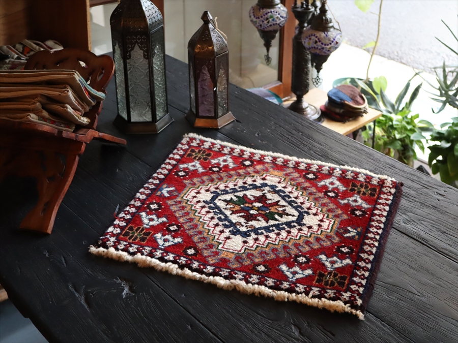 - ヤラメ 手織りラグ ミニサイズ /トライバルラグ38×44cm