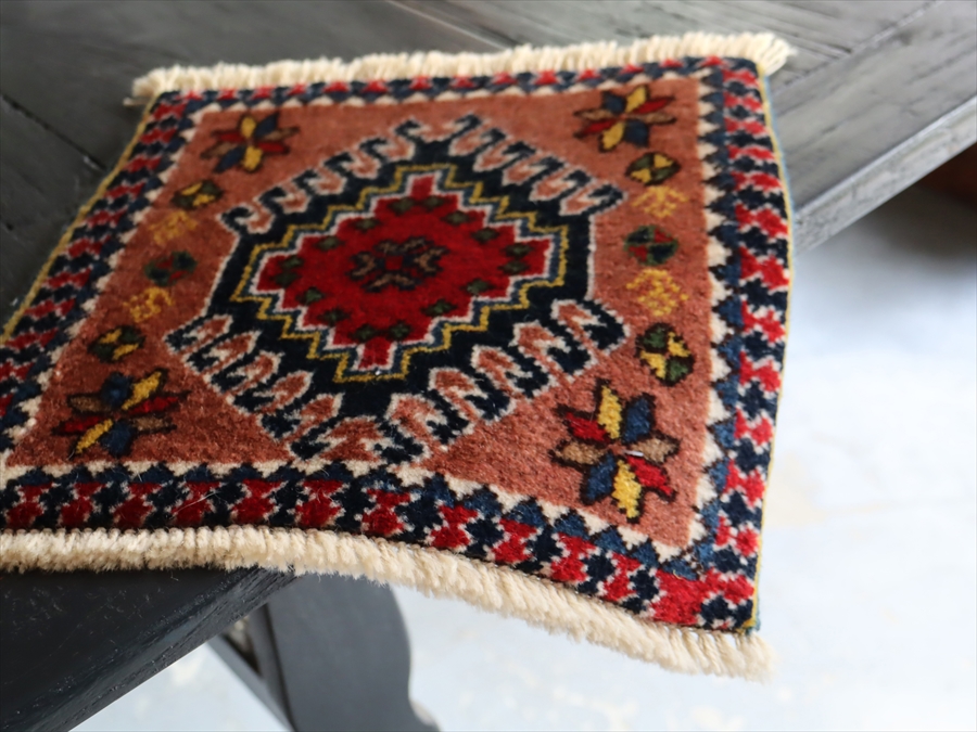 - ヤラメ 手織りラグ ミニサイズ /トライバルラグ32×31cm