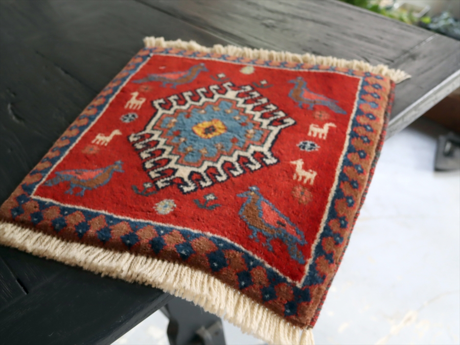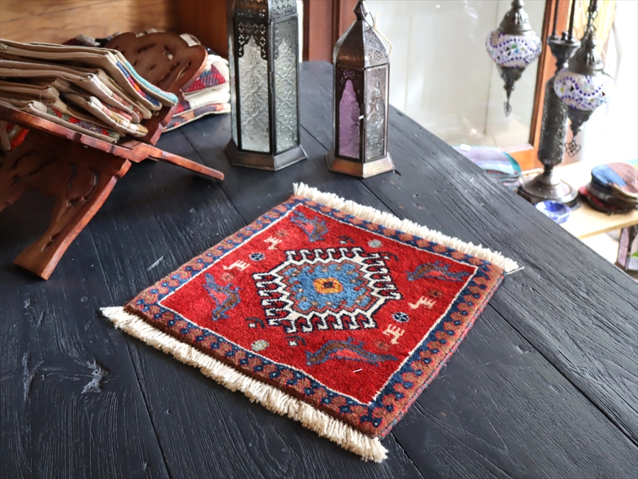 - ヤラメ 手織りラグ ミニサイズ /トライバルラグ34×32cm