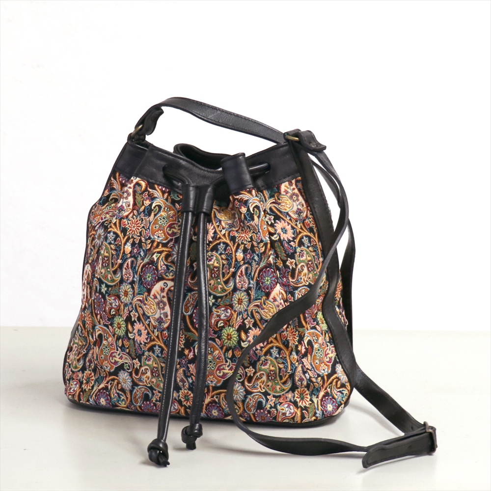 テルメ ペイズリーの巾着型ショルダーバッグ黒 ブラック