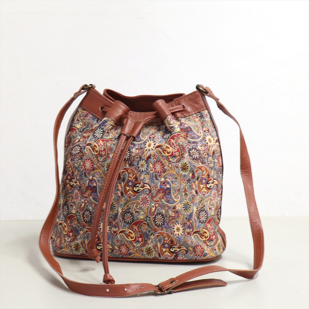 テルメ ペイズリーの巾着型ショルダーバッググレー /革の色ブラウン