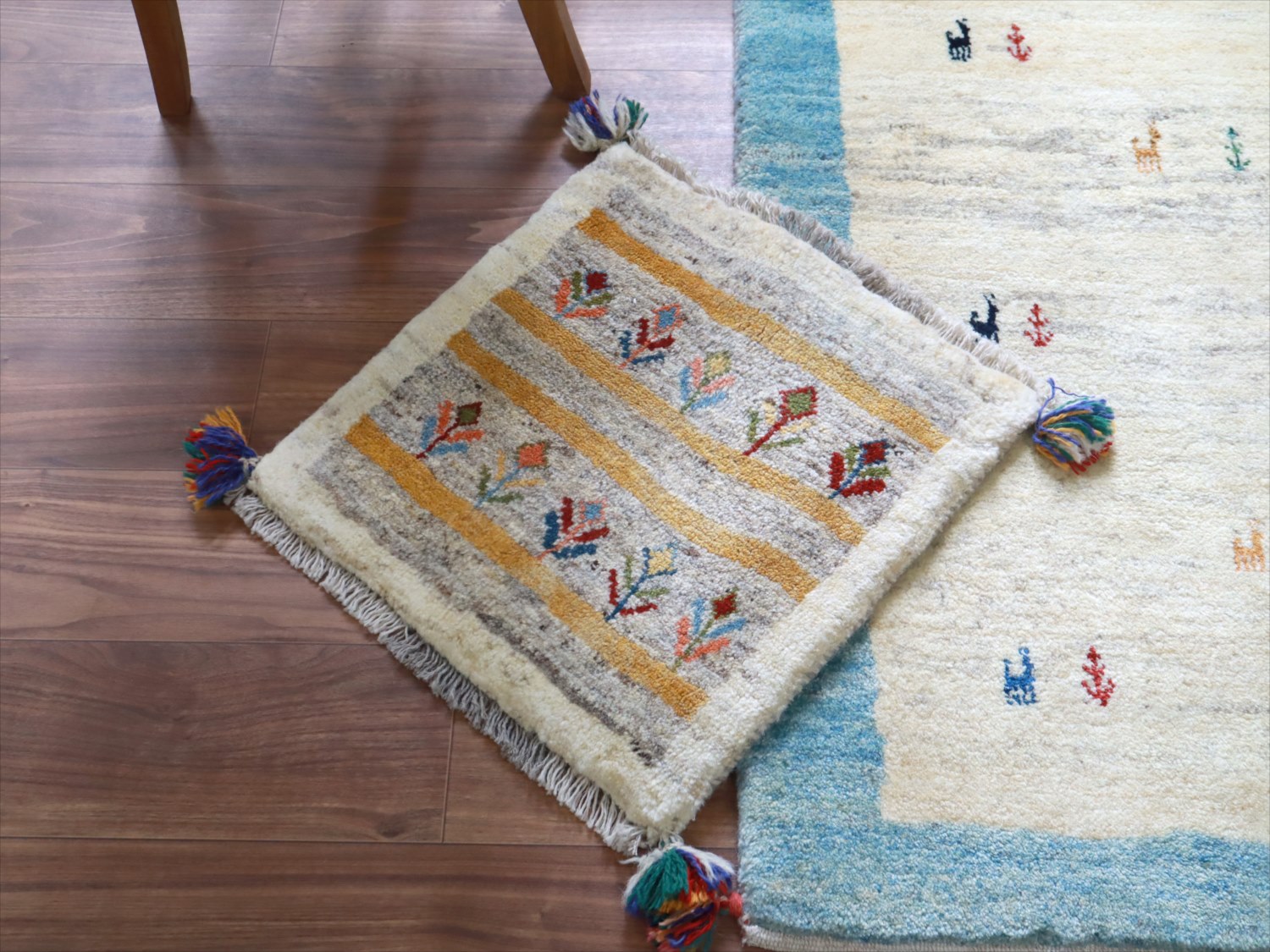 - 【15%OFF】ギャッベ イラン産手織り 座布団サイズ 46x46cm