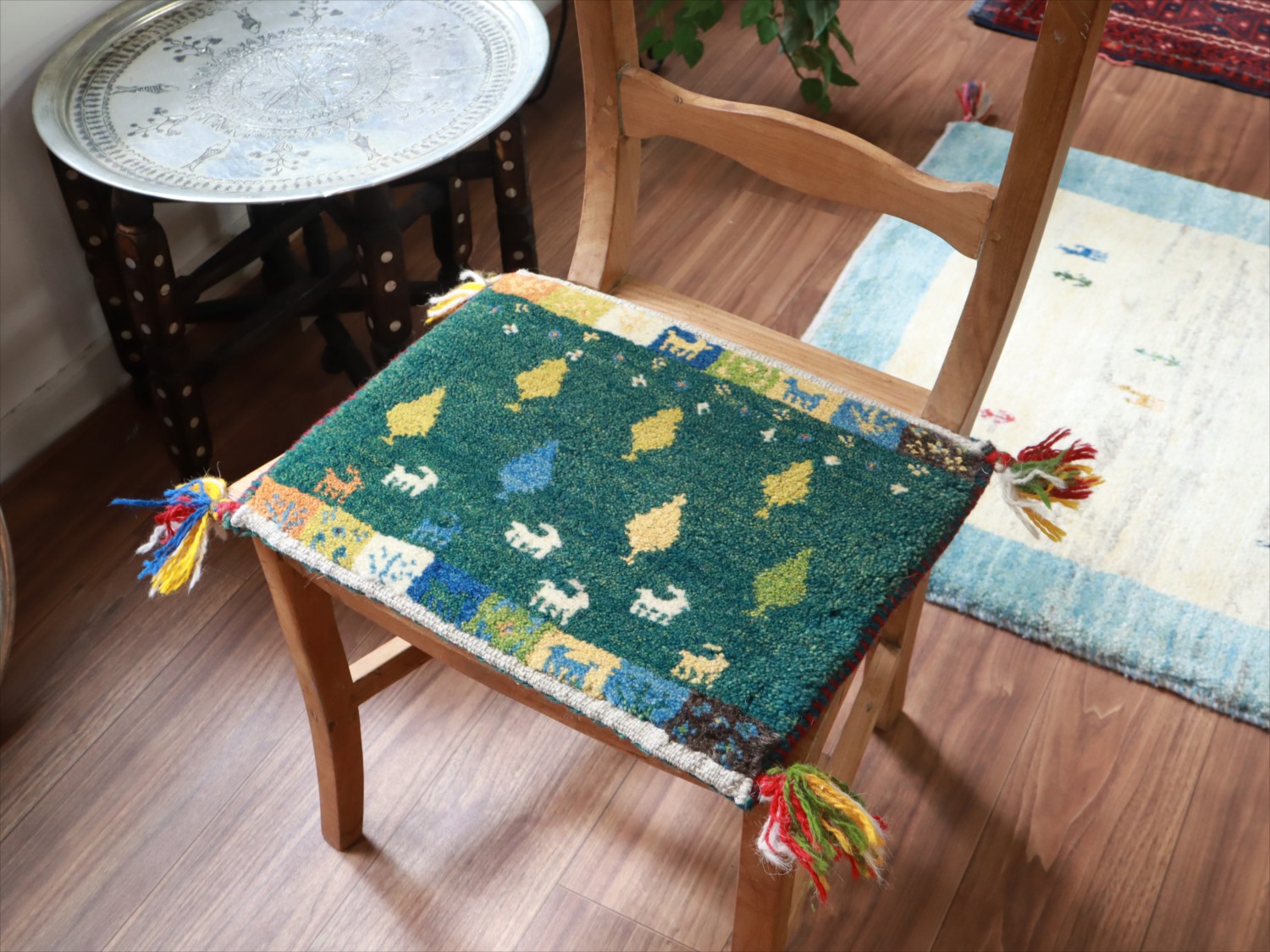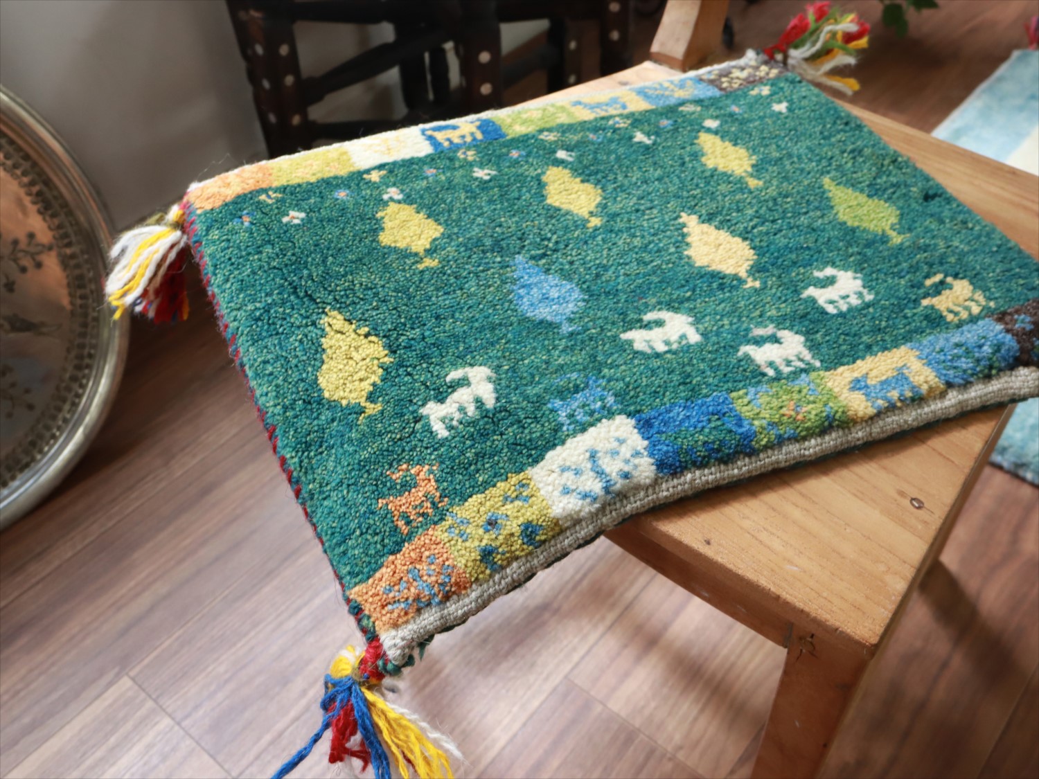 - 【15%OFF】ギャッベ イラン産手織り 座布団サイズ 35x42cm グリーン