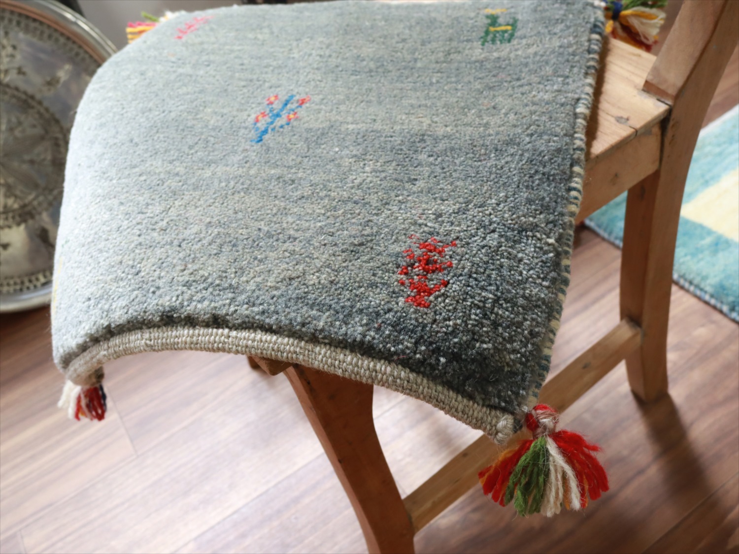 ギャッベ イラン産手織り 座布団サイズ 41x43cm グレー