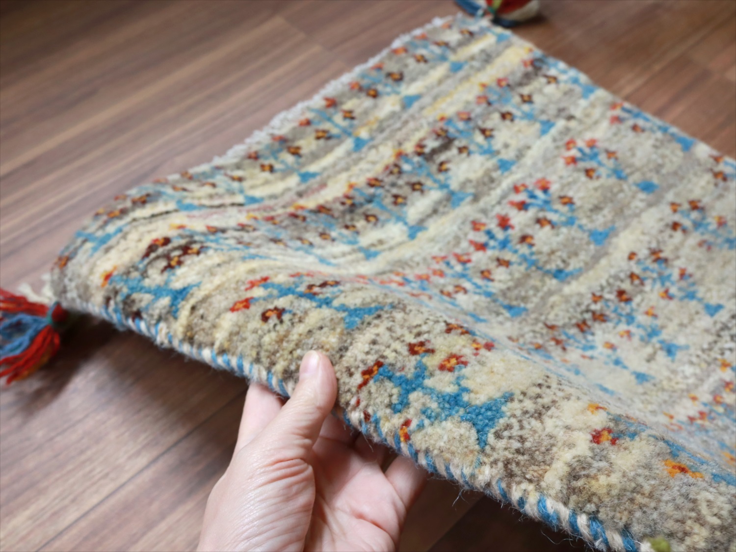 ギャッベ イラン産手織り 座布団サイズ 45x45cm グレーグラデーション 草花
