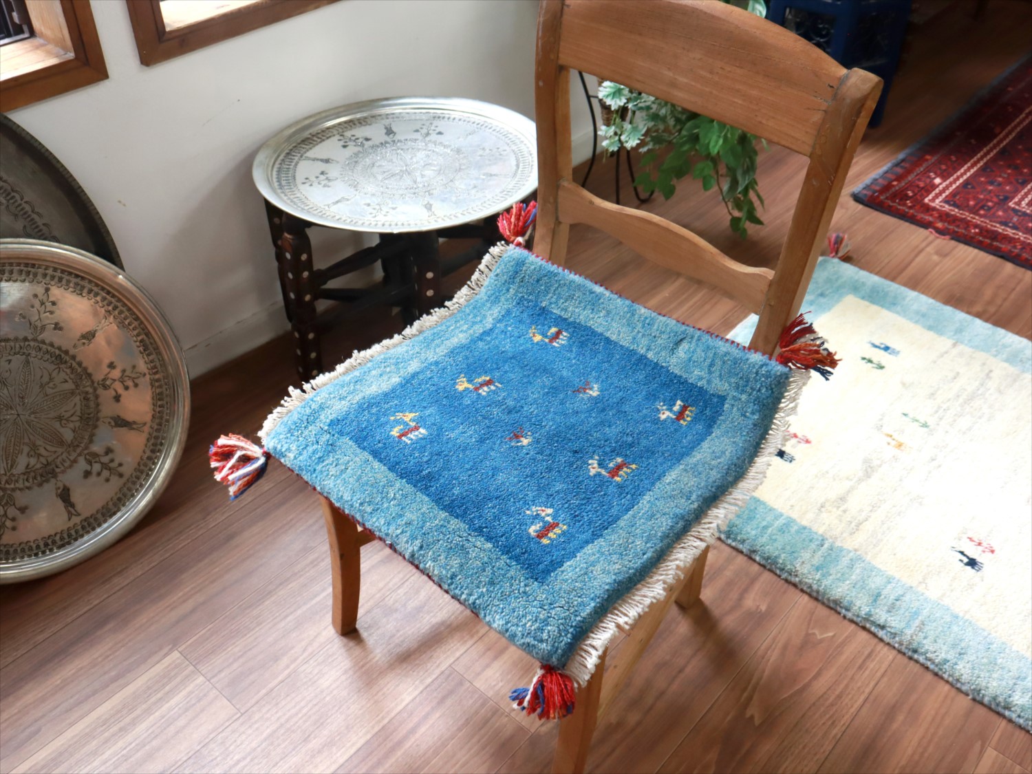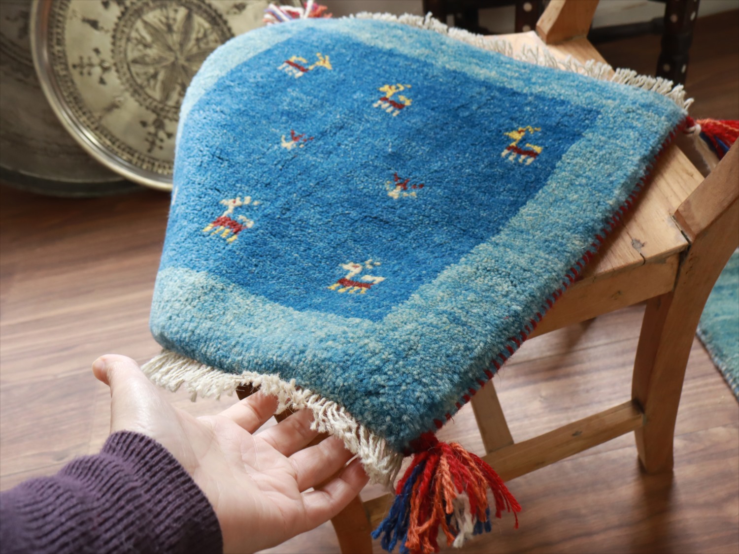 ギャッベ イラン産手織り 座布団サイズ 43x45cm ブルーのツートーン