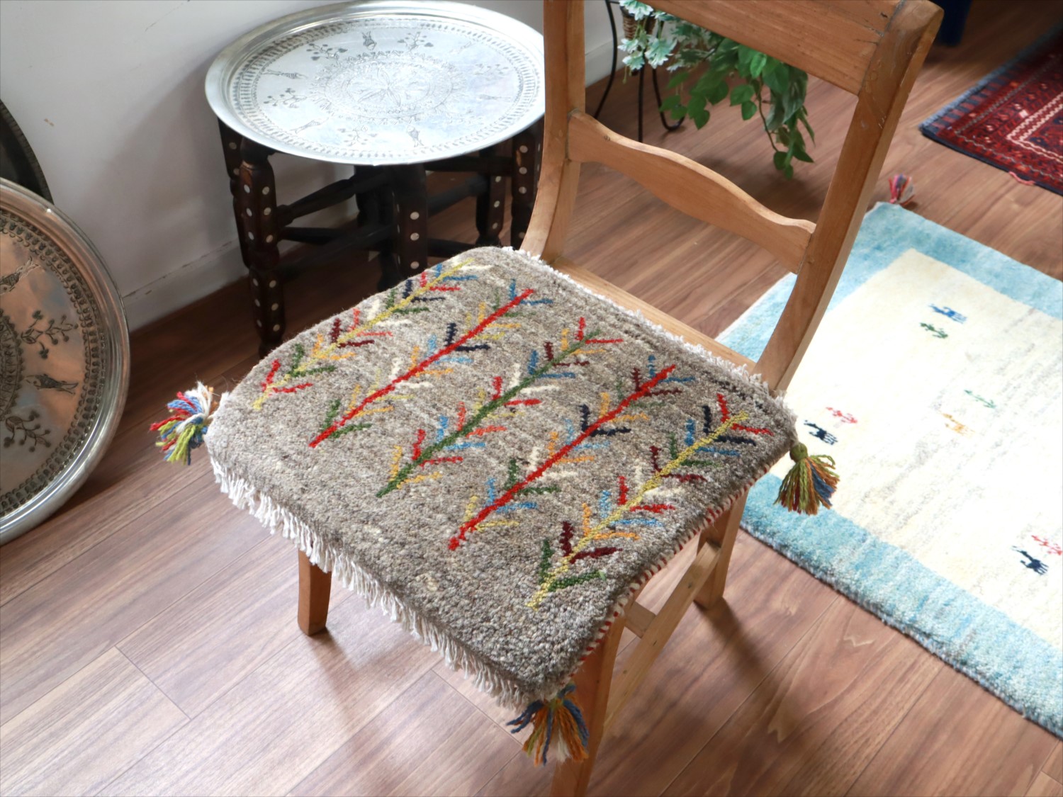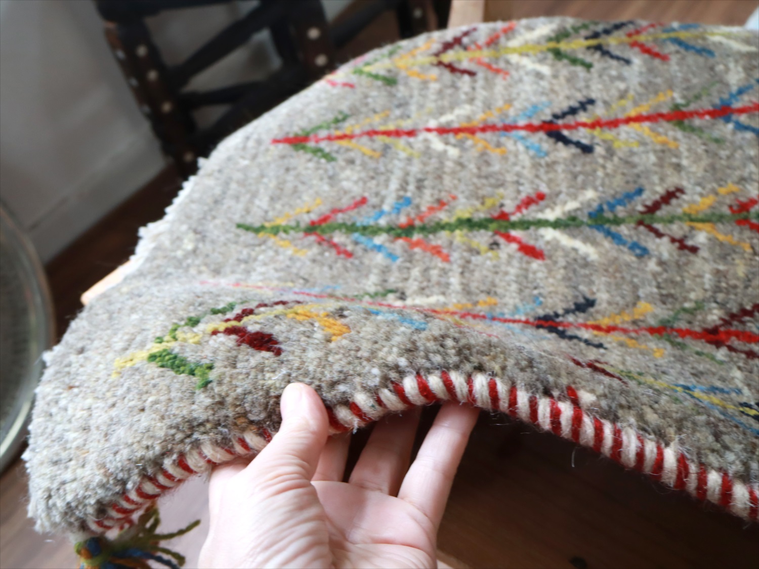 ギャッベ イラン産手織り 座布団サイズ 41x43cm ナチュラルアイボリー