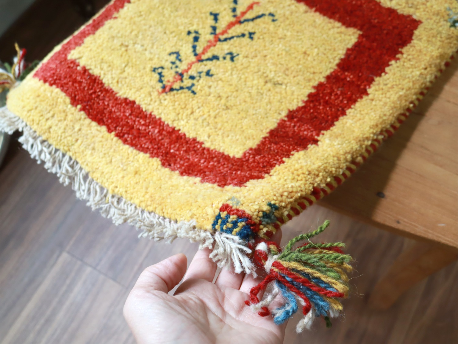 ギャッベ イラン産手織り 座布団サイズ 40x40cm イエロー