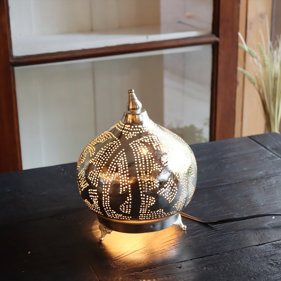 Key:モロッコランプ BOHO モロッコランタン メタルシェード ボヘミアンスタイル シルバー メタルランプ インダストリアル テーブルランプ テーブルライト 間接照明 室内照明 店舗照明 Morroco Lamp Egyptian lamp Egypt craftmanship