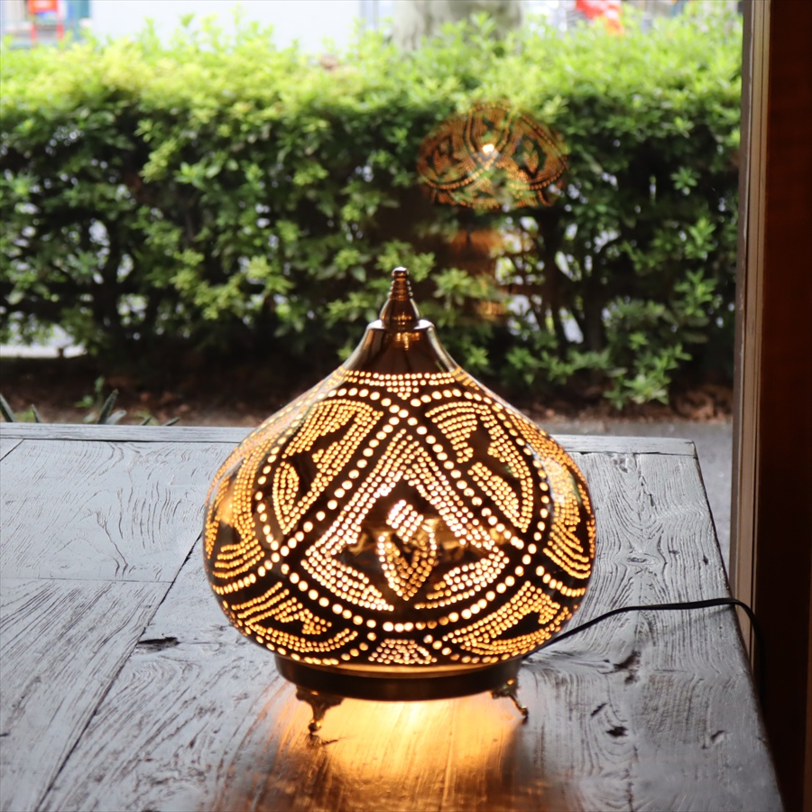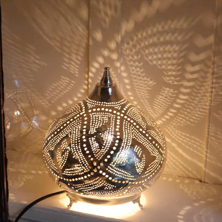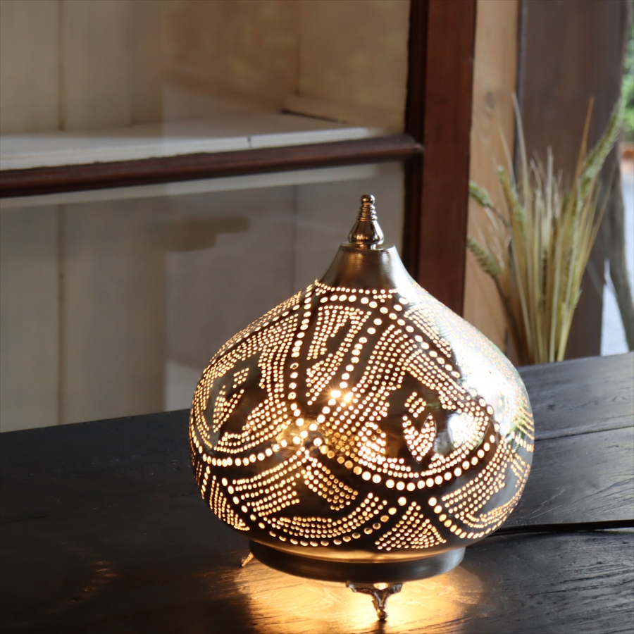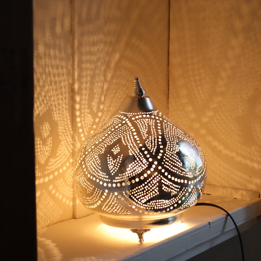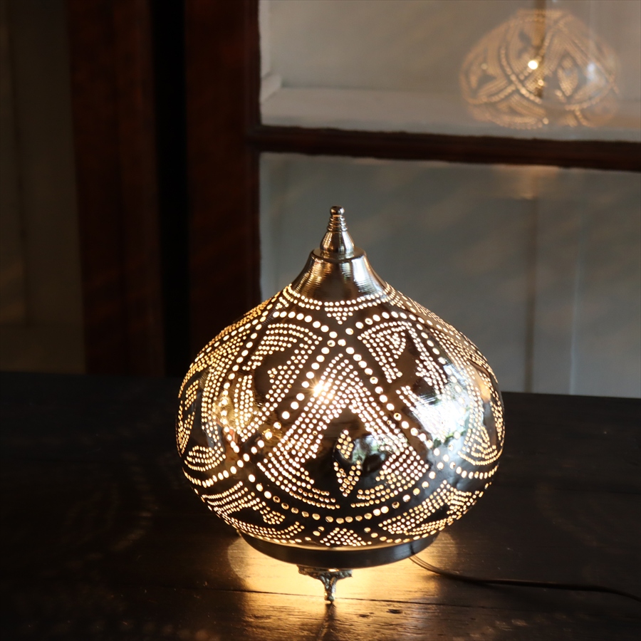 Key:モロッコランプ BOHO モロッコランタン メタルシェード ボヘミアンスタイル シルバー メタルランプ インダストリアル テーブルランプ テーブルライト 間接照明 室内照明 店舗照明 Morroco Lamp Egyptian lamp Egypt craftmanship