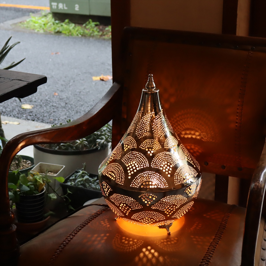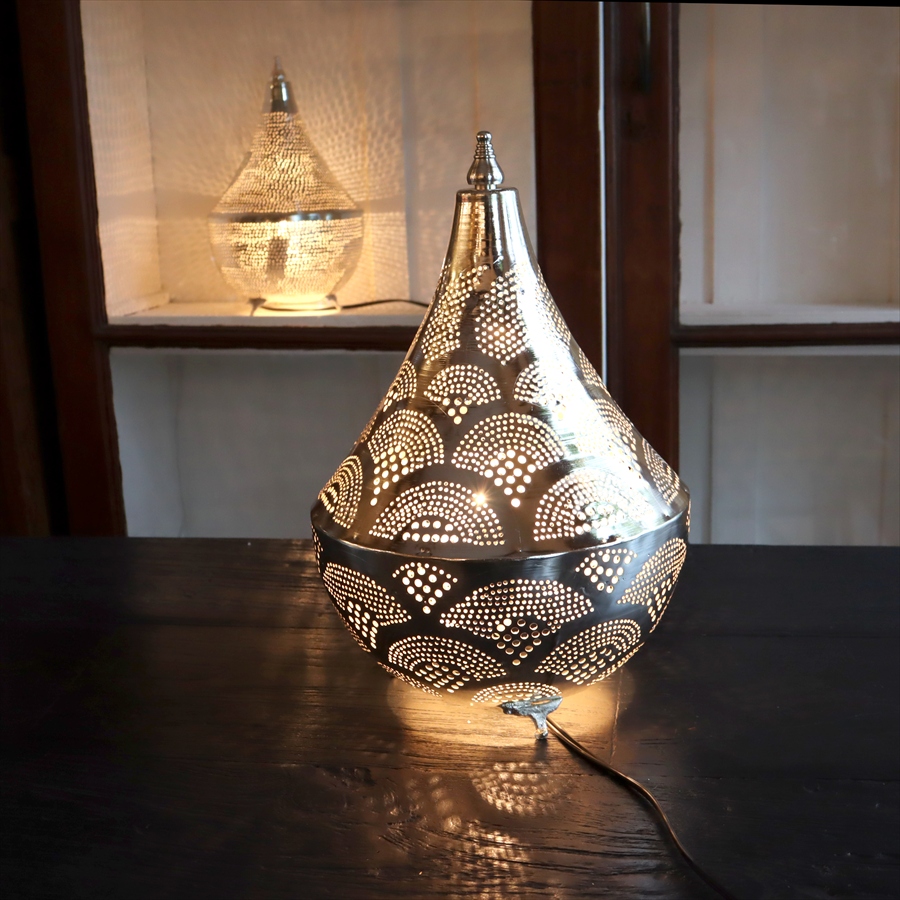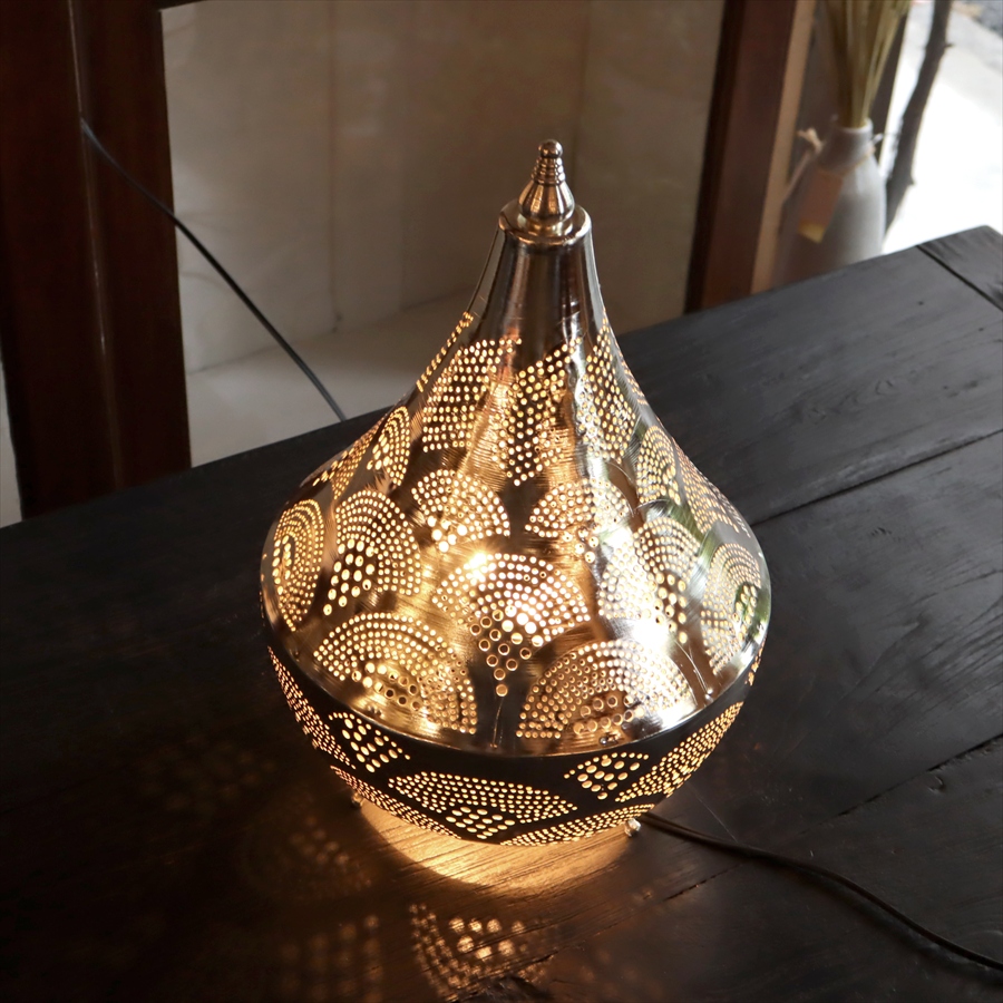 Key:モロッコランプ BOHO モロッコランタン メタルシェード ボヘミアンスタイル シルバー メタルランプ インダストリアル テーブルランプ テーブルライト 間接照明 室内照明 店舗照明 Morroco Lamp Egyptian lamp Egypt craftmanship