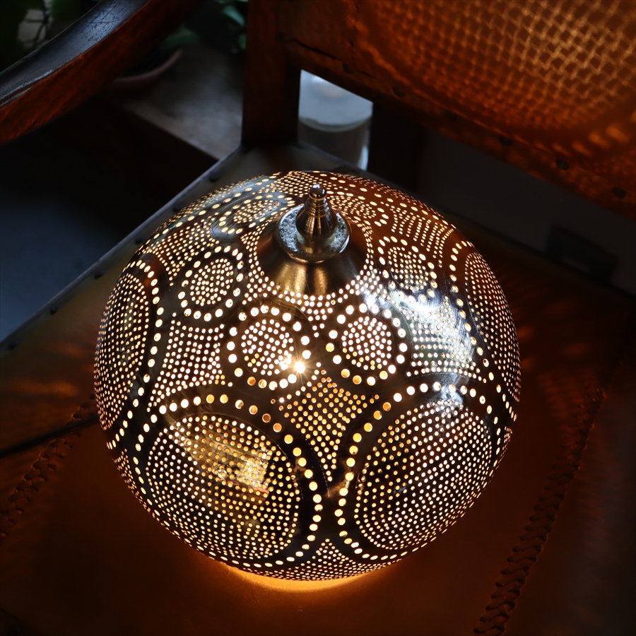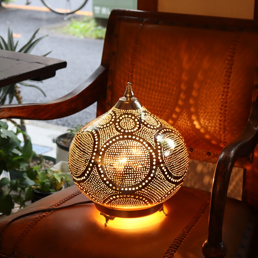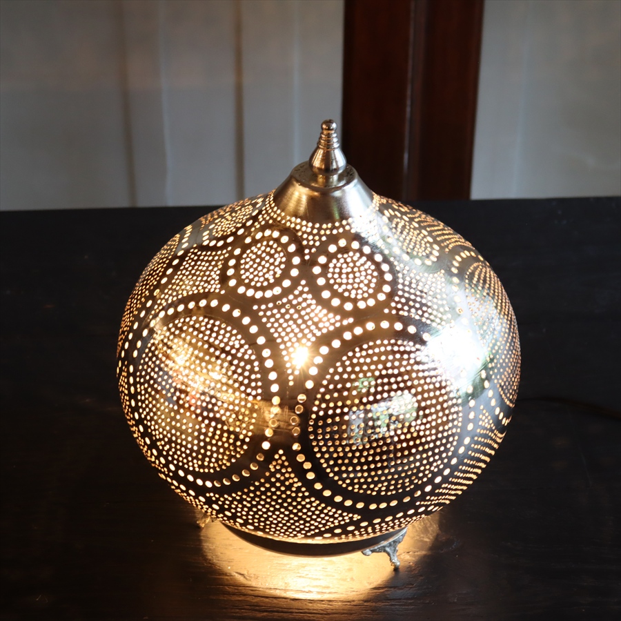 Key:モロッコランプ BOHO モロッコランタン メタルシェード ボヘミアンスタイル シルバー メタルランプ インダストリアル テーブルランプ テーブルライト 間接照明 室内照明 店舗照明 Morroco Lamp Egyptian lamp Egypt craftmanship
