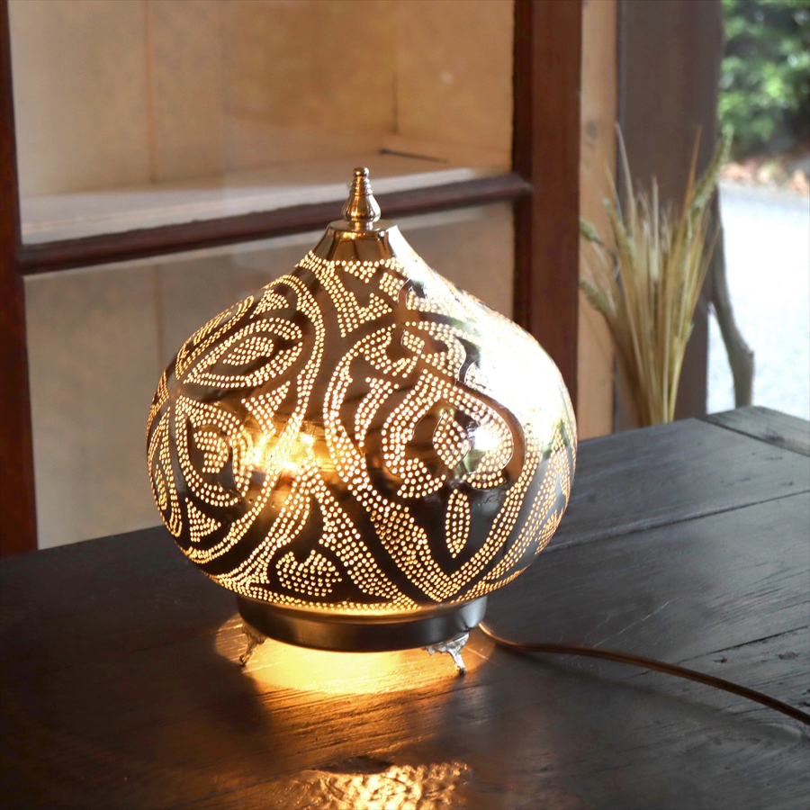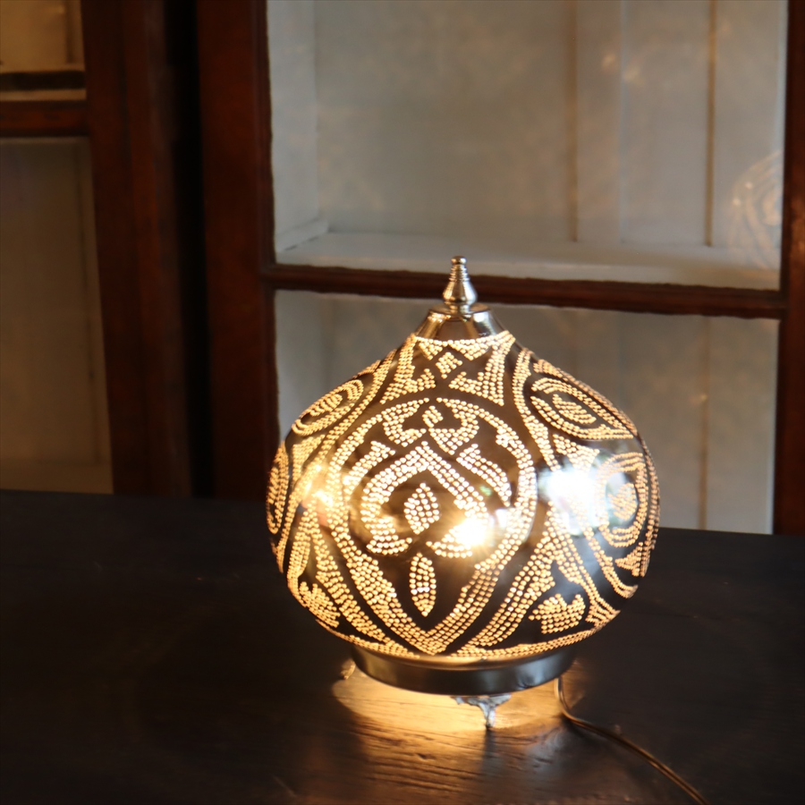 Key:モロッコランプ BOHO モロッコランタン メタルシェード ボヘミアンスタイル シルバー メタルランプ インダストリアル テーブルランプ テーブルライト 間接照明 室内照明 店舗照明 Morroco Lamp Egyptian lamp Egypt craftmanship