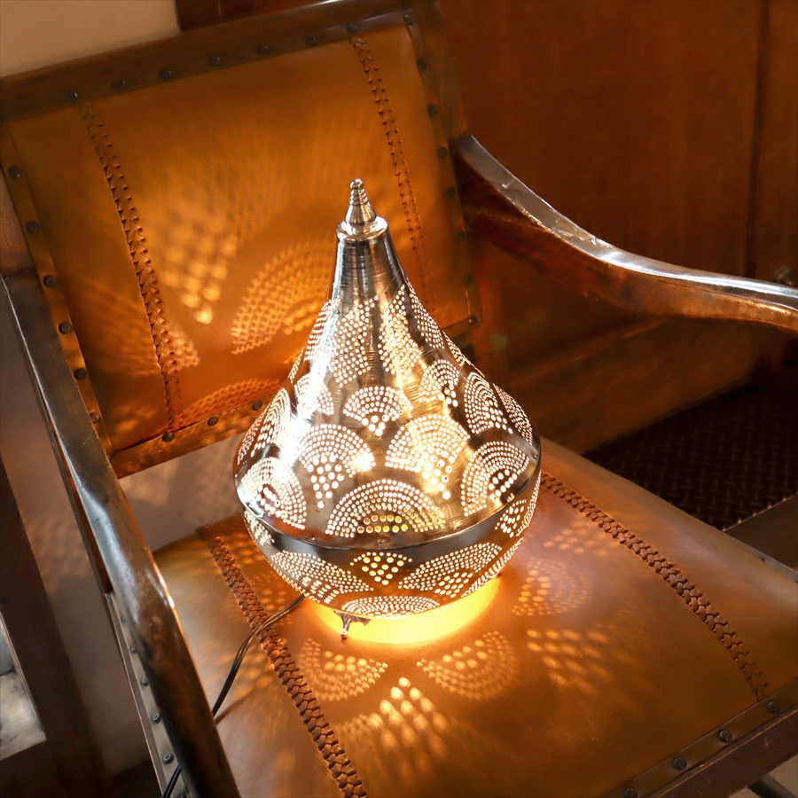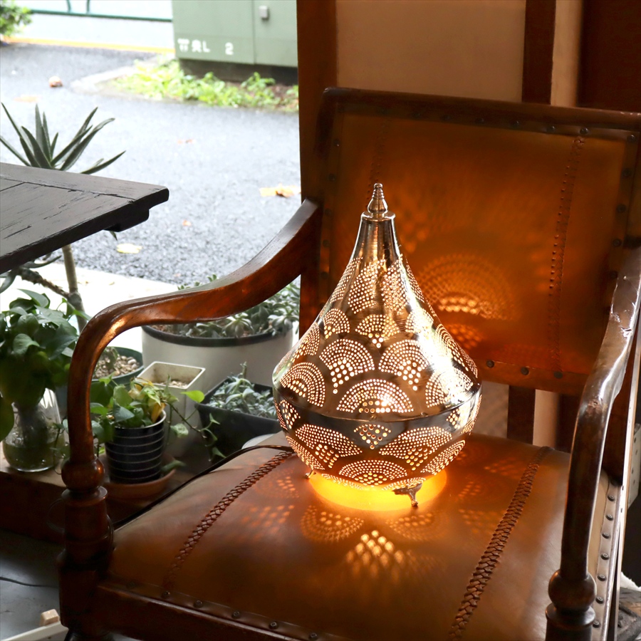 Key:モロッコランプ BOHO モロッコランタン メタルシェード ボヘミアンスタイル シルバー メタルランプ インダストリアル テーブルランプ テーブルライト 間接照明 室内照明 店舗照明 Morroco Lamp Egyptian lamp Egypt craftmanship