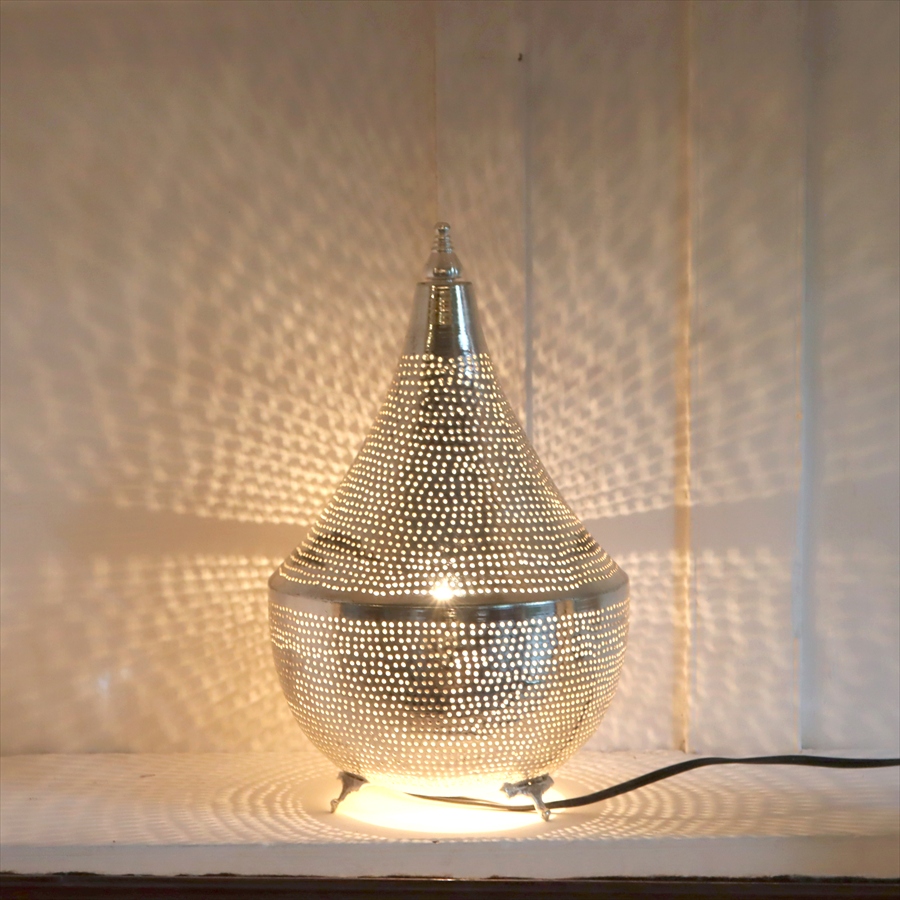 Key:モロッコランプ BOHO モロッコランタン メタルシェード ボヘミアンスタイル シルバー メタルランプ インダストリアル テーブルランプ テーブルライト 間接照明 室内照明 店舗照明 Morroco Lamp Egyptian lamp Egypt craftmanship